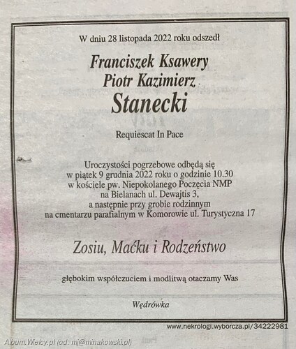 ![]() | Informacje o tym zdjęciuTytuł: Nekrolog Franciszka Staneckiego;