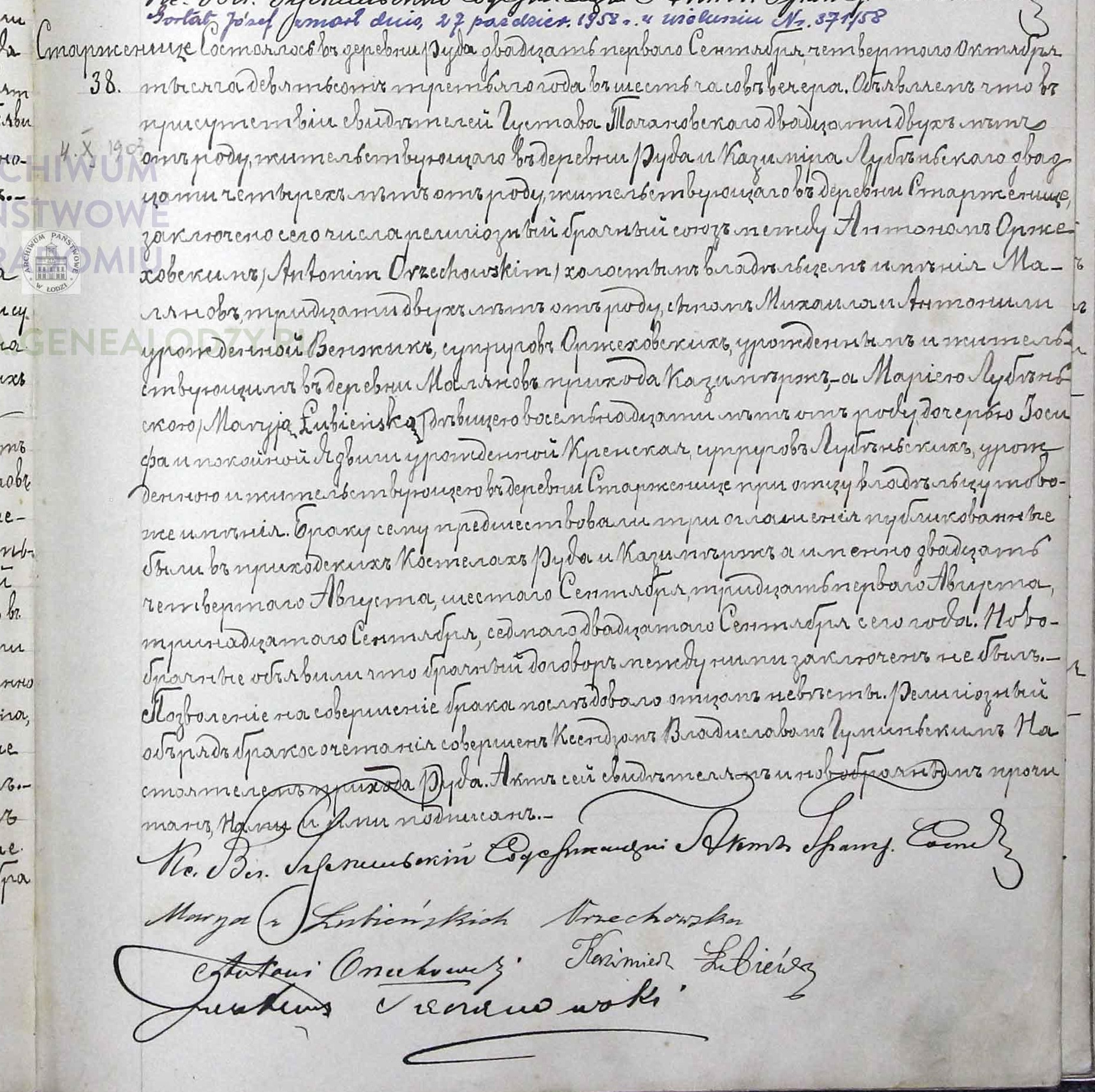 - Wojciech Orzechowski h. Oksza ("Sosa" 4) & ; ("Sosa" 5) Józefa Łukomska z Łukomia w pow. konińskim h. Szeliga