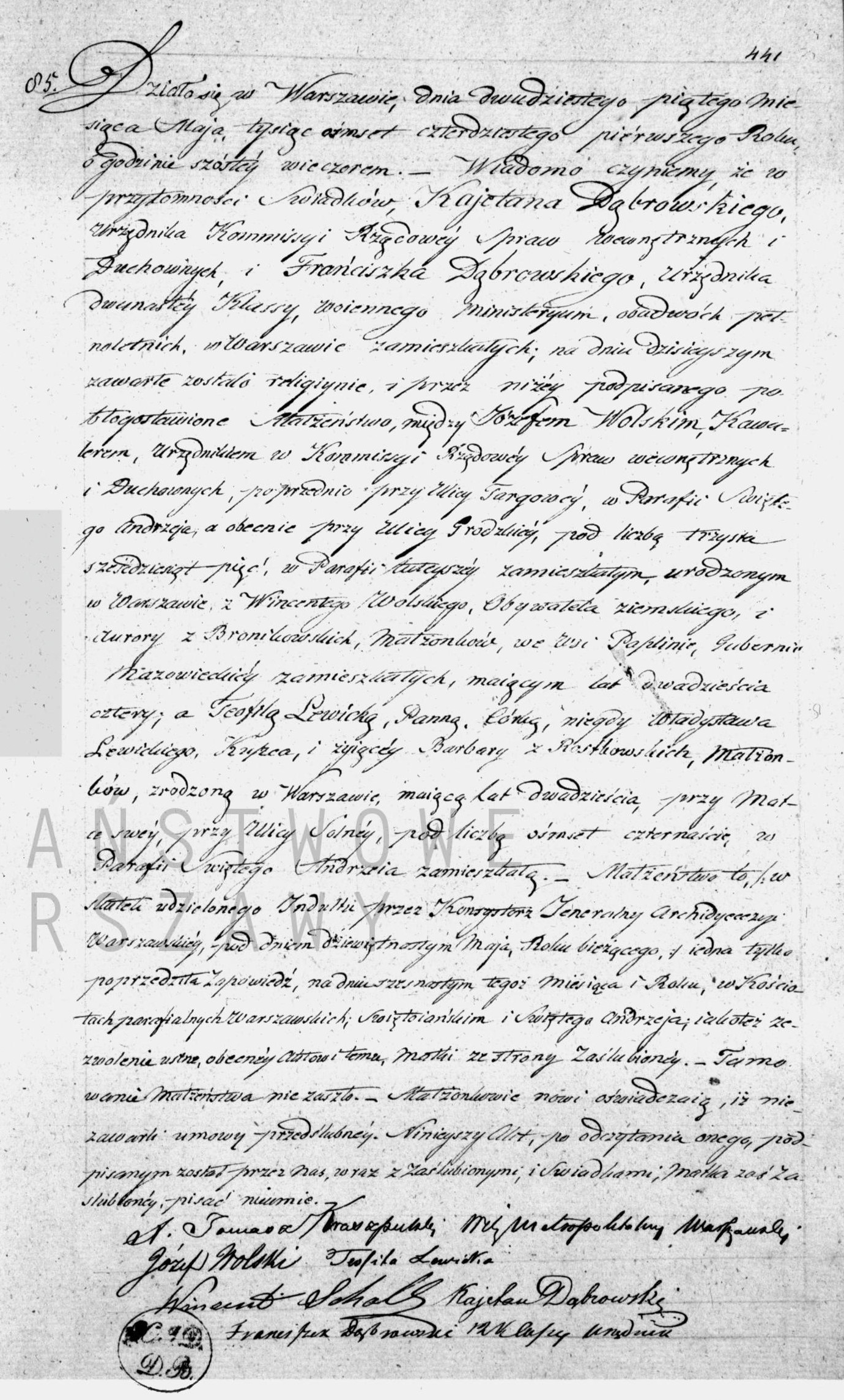 - ślub: Akt małżeństwa: Warszawa ASC Cyrkuł III (obecn. m. Warszawa), rok 1816, nr aktu 50 [indeks na http://geneteka.genealodzy.pl/] http://metryki.genealodzy.pl/metryka.php?ar=1&zs=0185d&sy=108&kt=3&skan=050.jpg [podgląd]