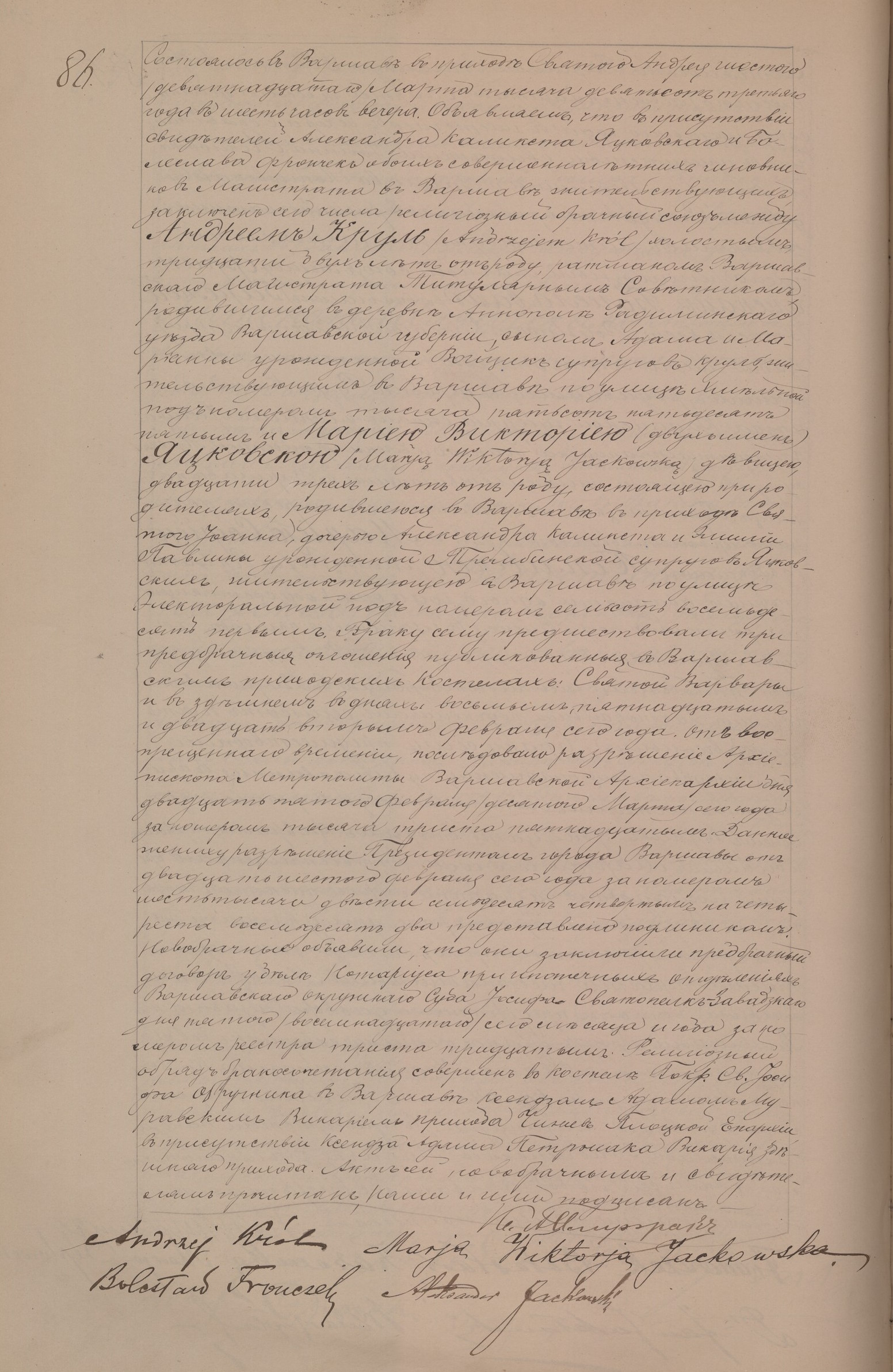 żona (ślub: w roku 1872, Warszawa, par. św. Jana (katedra) (obecn. m. Warszawa), ):