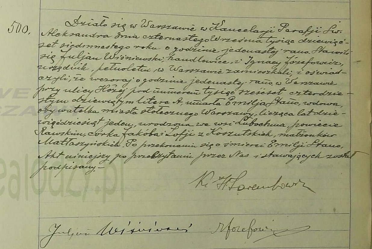 - zgon: Akt zgonu: Warszawa św. Aleksander (obecn. m. Warszawa), 500/1917 http://localhost/mjm/aleksander_1917_496-501.jpg [podglad]