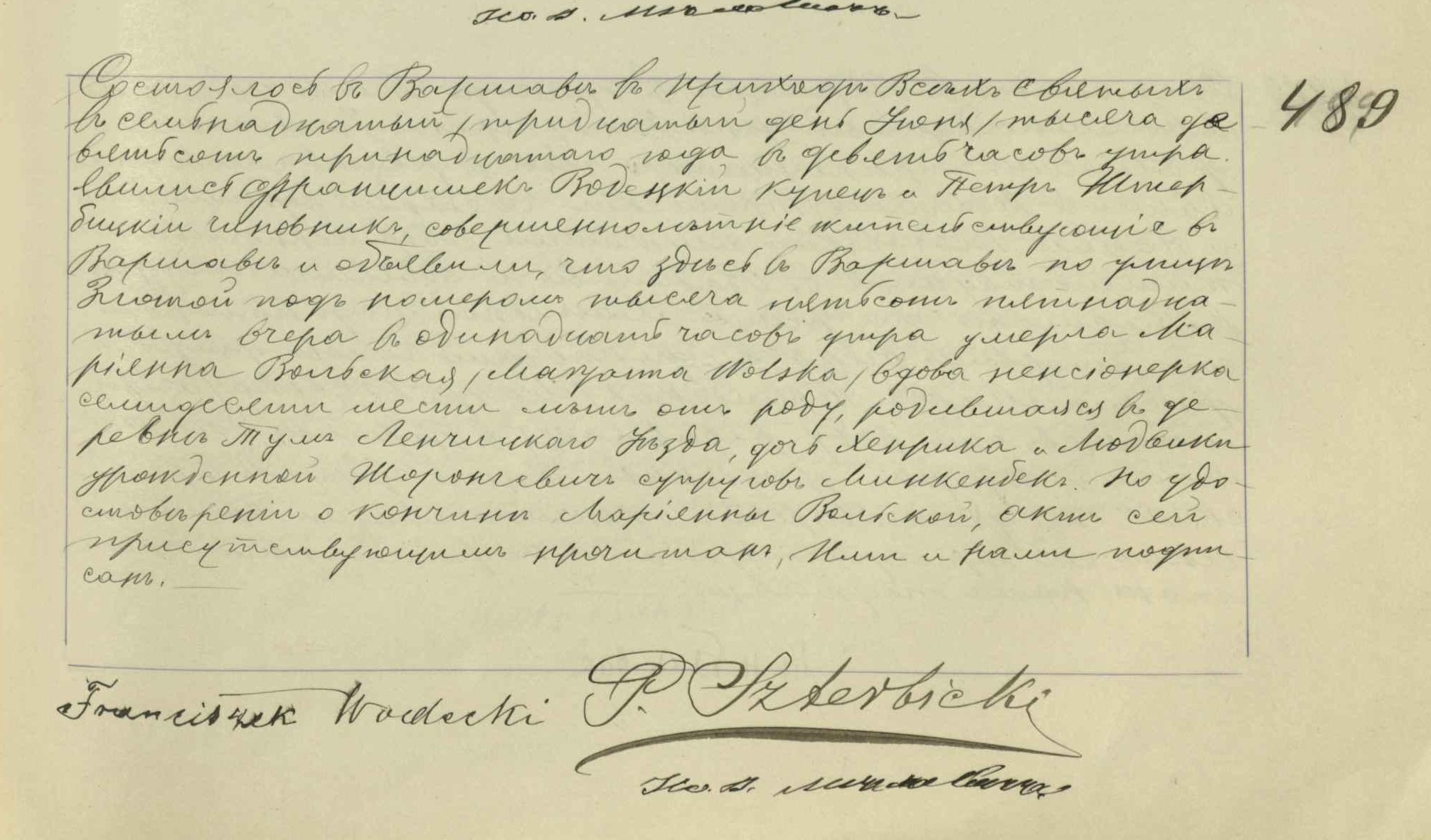 - urodzenie: Akt urodzenia: Tum (obecn. woj. łódz.), 20/1832 - chrzest: Akt urodzenia: Tum, 20/1832 - ślub: Akt małżeństwa: Łowicz Kolegiata (obecn. woj. łódz.), rok 1857, nr aktu 48 [indeks na http://geneteka.genealodzy.pl/] https://metryki.genealodzy.pl/id225-sy1857 [podgląd] - zgon: Akt zgonu: Warszawa Wszystkich Świętych (obecn. m. Warszawa), 489/1913 http://localhost/mjm/wwswietych_1913_0484-0489.jpg [podglad]