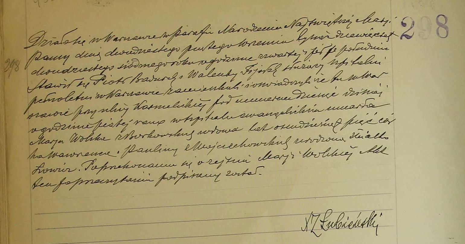 - urodzenie: Akt urodzenia: Łowicz Kolegiata (obecn. woj. łódz.), 94/1842 - chrzest: Akt urodzenia: Łowicz Kolegiata, 94/1842 - ślub: Akt małżeństwa: Warszawa św. Krzyż (obecn. m. Warszawa), rok 1864, nr aktu 506 [indeks na http://geneteka.genealodzy.pl/] http://metryki.genealodzy.pl/metryki.php?op=kt&ar=1&zs=0158d&sy=1864b&kt=2 [podgląd] - zgon: Akt zgonu: Warszawa-Leszno Narodzenie NMP (obecn. m. Warszawa), 298/1927 http://metryki.genealodzy.pl/metryki.php?op=kt&ar=1&zs=1217d&sy=1927b&kt=2 [podglad] - pogrzeb: Urz. M. st.W-wy http://cmentarze.um.warszawa.pl/pomnik.aspx?pom_id=9811
