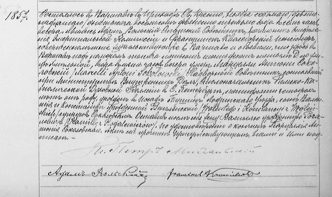 - ślub 1: Akt małżeństwa: Warszawa św. Andrzej (obecn. m. Warszawa), rok 1874, nr aktu 49 [indeks na http://geneteka.genealodzy.pl/] http://metryki.genealodzy.pl/metryki.php?op=kt&ar=1&zs=0159d&sy=1874&kt=2 [podgląd] - zgon: Akt zgonu: Warszawa św. Krzyż (obecn. m. Warszawa), 1857/1893 http://localhost/mjm/krzyz_1893_161_126_0619.jpg [podglad] - pogrzeb: Urz. M. st.W-wy http://cmentarze.um.warszawa.pl/pomnik.aspx?pom_id=26798