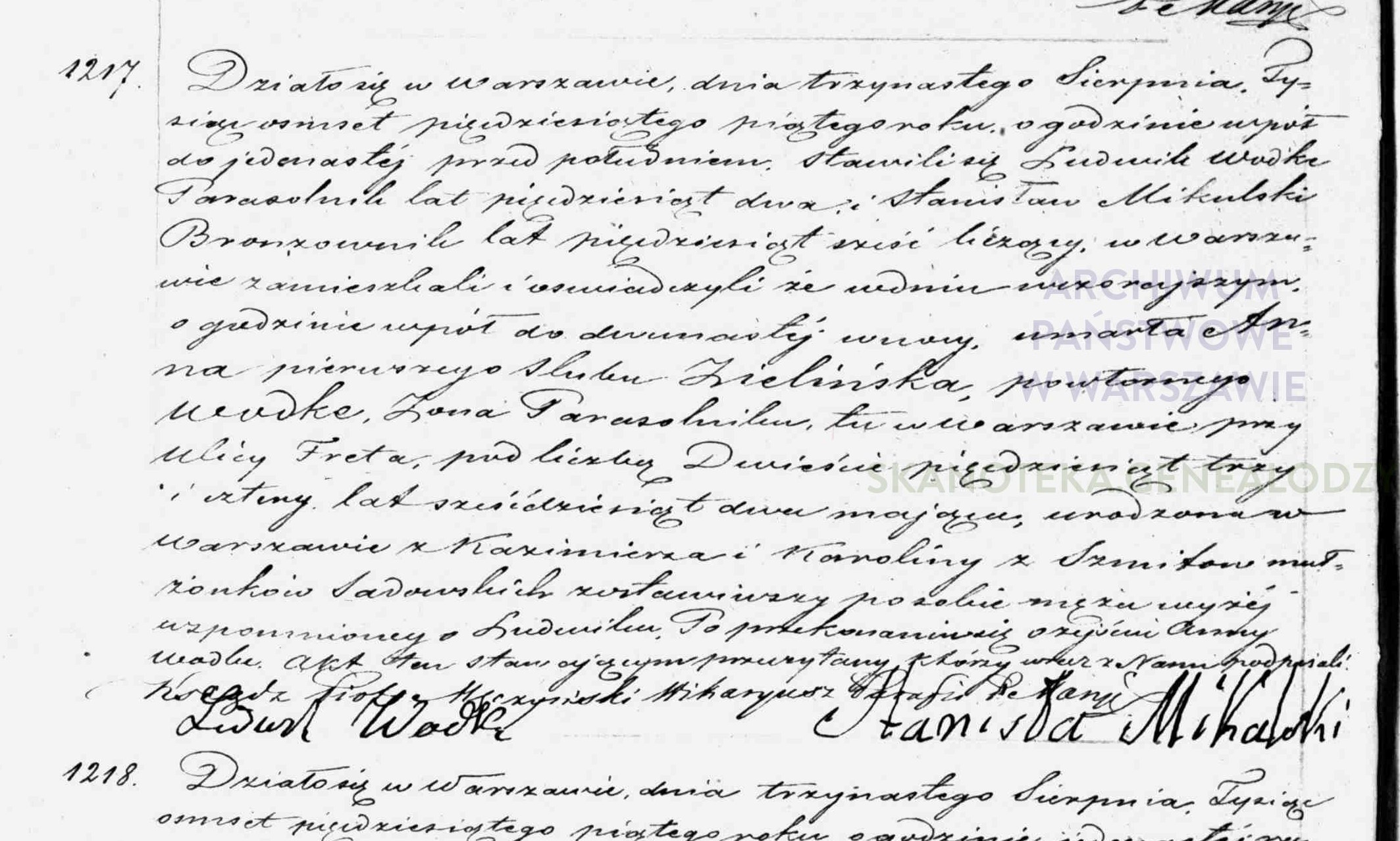 - ślub 2: Akt małżeństwa: Warszawa Nawiedzenie NMP (obecn. m. Warszawa), rok 1835, nr aktu 84 [indeks na http://geneteka.genealodzy.pl/] http://metryki.genealodzy.pl/metryki.php?op=kt&ar=1&zs=0160d&sy=1835&kt=2 [podgląd] - zgon: Akt zgonu: Warszawa Nawiedzenie NMP (obecn. m. Warszawa), 1217/1855 http://metryki.genealodzy.pl/metryki.php?op=kt&ar=1&zs=0160d&sy=1855&kt=3 [podglad] |