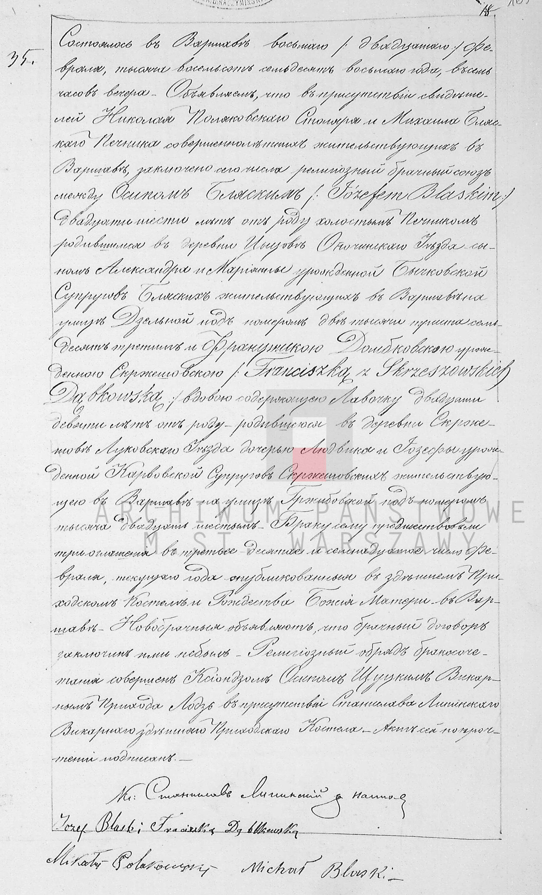 - ślub: Akt małżeństwa: Warszawa św. Andrzej (obecn. m. Warszawa), rok 1878, nr aktu 35 [indeks na http://geneteka.genealodzy.pl/] http://metryki.genealodzy.pl/metryki.php?op=kt&ar=1&zs=0159d&sy=1878&kt=2 [podgląd]