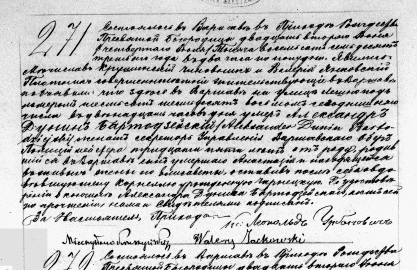 - zgon: Akt zgonu: Warszawa-Leszno Narodzenie NMP (obecn. m. Warszawa), 271/1873 http://localhost/mjm/leszno_1873_1217_5_0365.jpg [podglad]