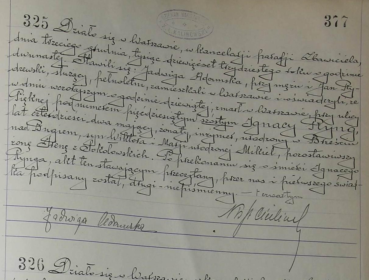 - ślub: Akt małżeństwa: Warszawa św. Aleksander (obecn. m. Warszawa), rok 1922, nr aktu 592 [indeks na http://geneteka.genealodzy.pl/] http://metryki.genealodzy.pl/metryki.php?op=kt&ar=8&zs=9214d&sy=338&kt=1 [podgląd]