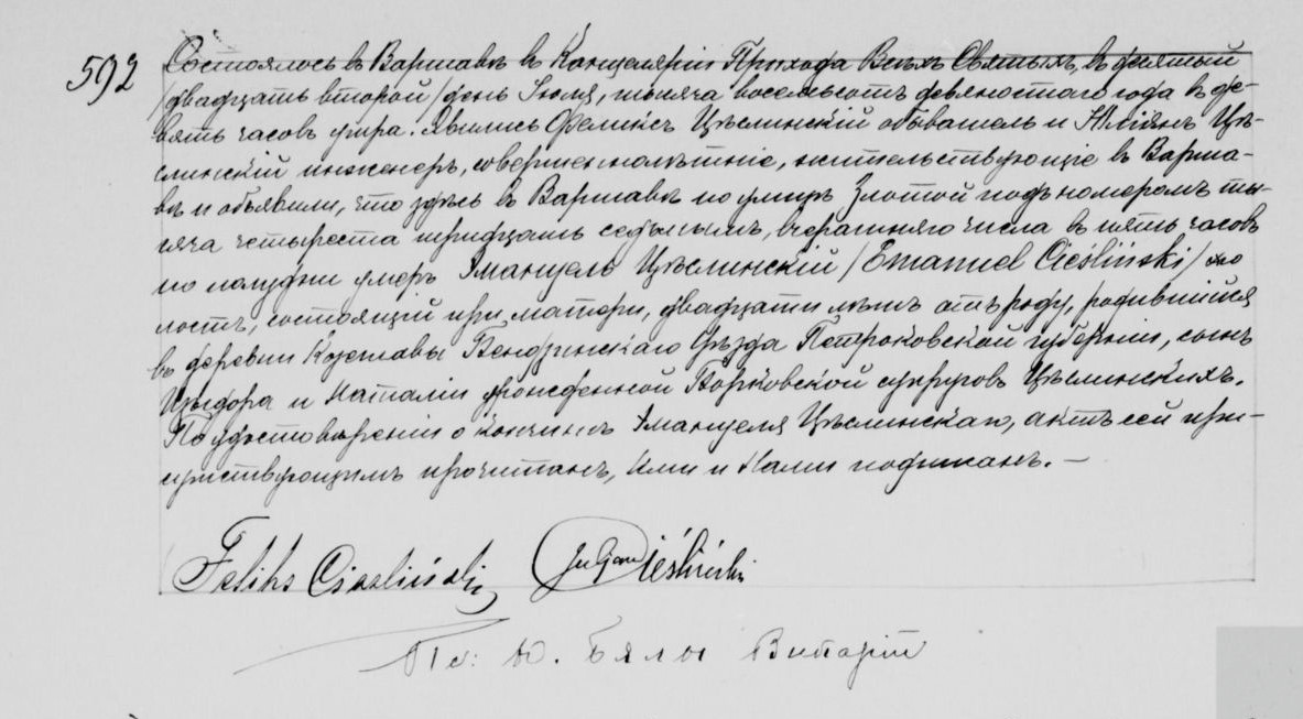 - zgon: Akt zgonu: Warszawa Wszystkich Świętych (obecn. m. Warszawa), 592/1890 http://localhost/mjm/wwswietych_1890_1219_50_0100.jpg [podglad]