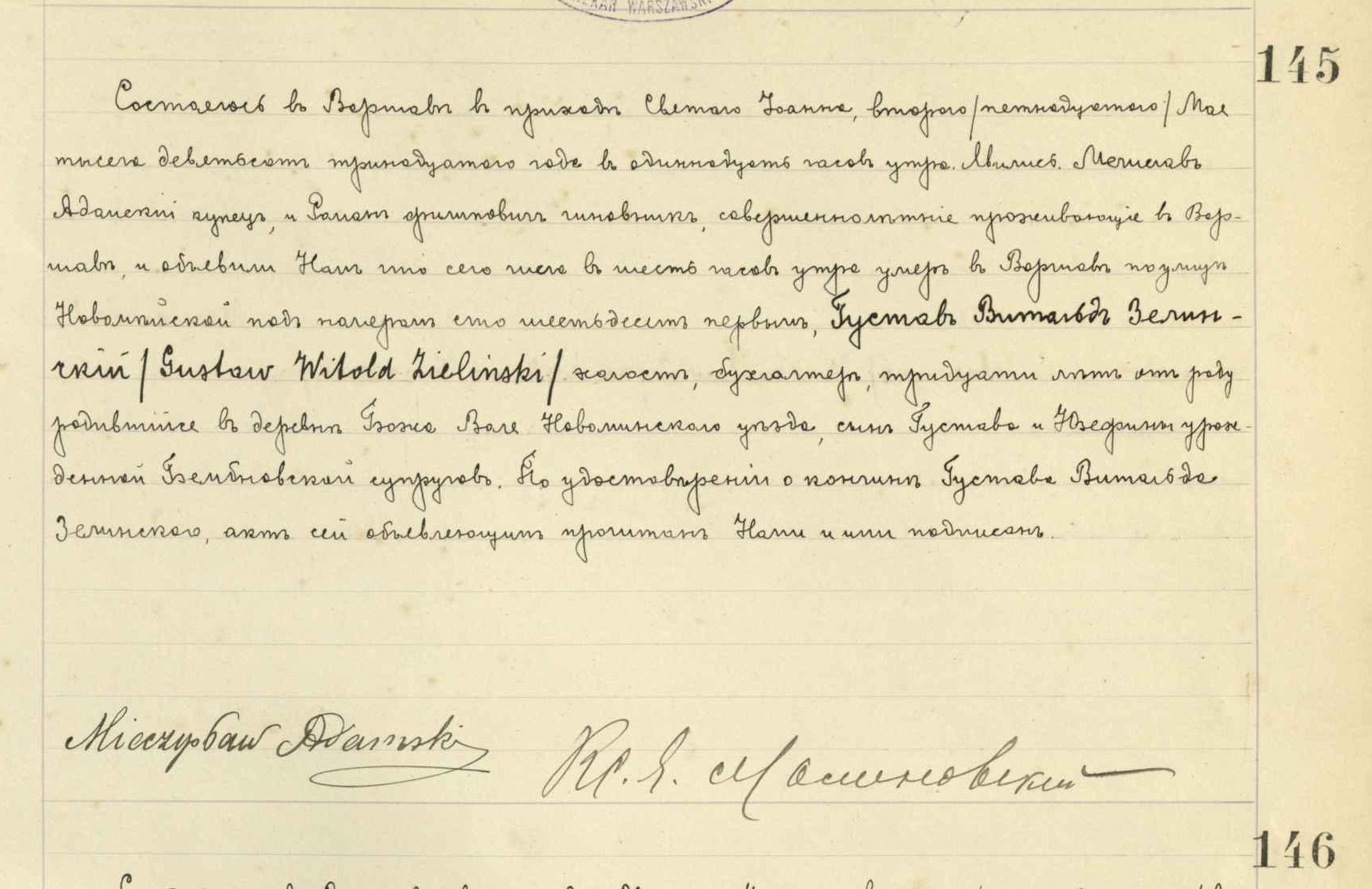 Gustaw Witold Zieliński z Zielonej h. Świnka ca 1883-1913|