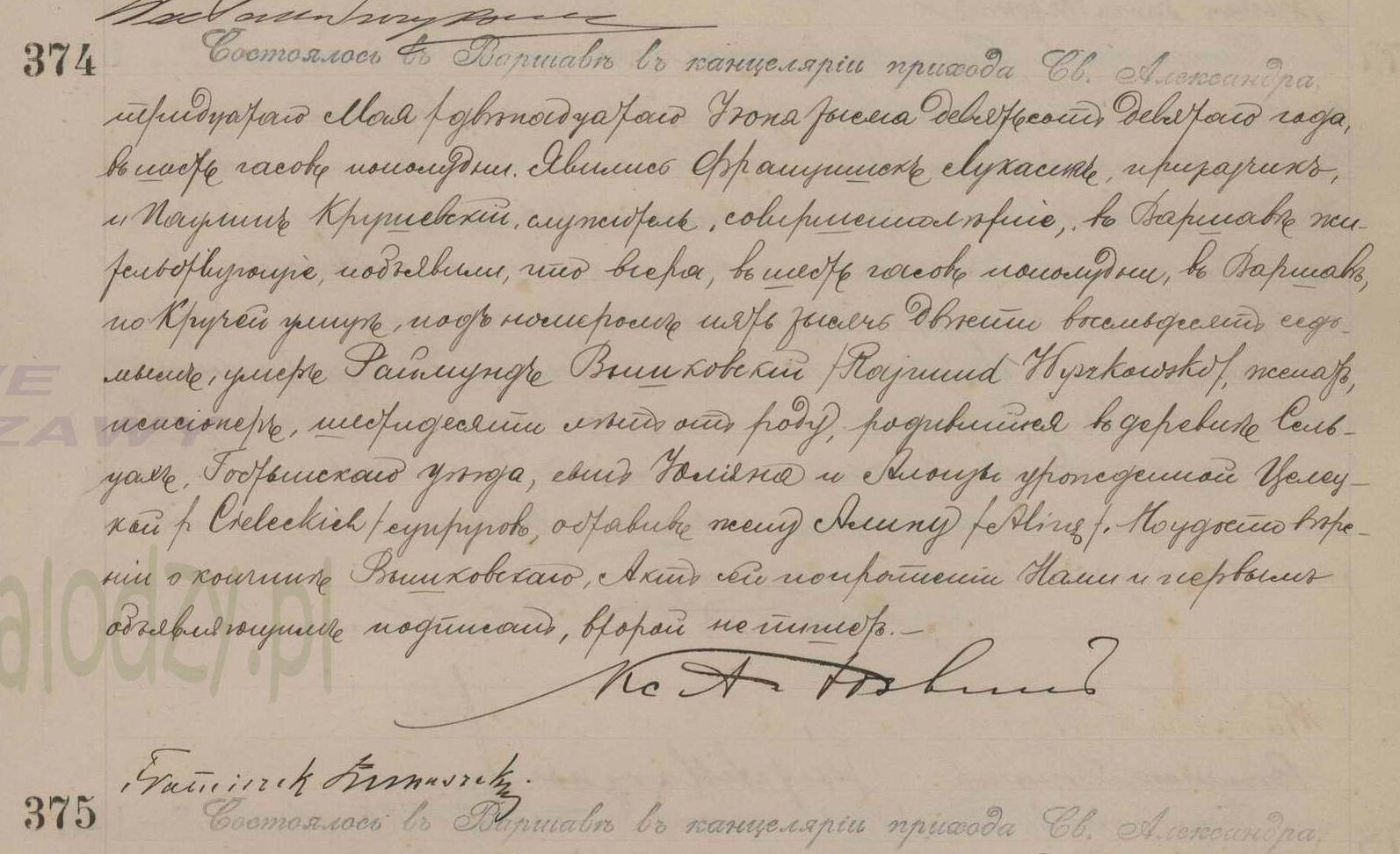 - ślub: gzg.11450621 - zgon: Akt zgonu: Warszawa św. Aleksander (obecn. m. Warszawa), 374/1909 http://localhost/mjm/aleksander_1909_370-375.jpg [podglad]