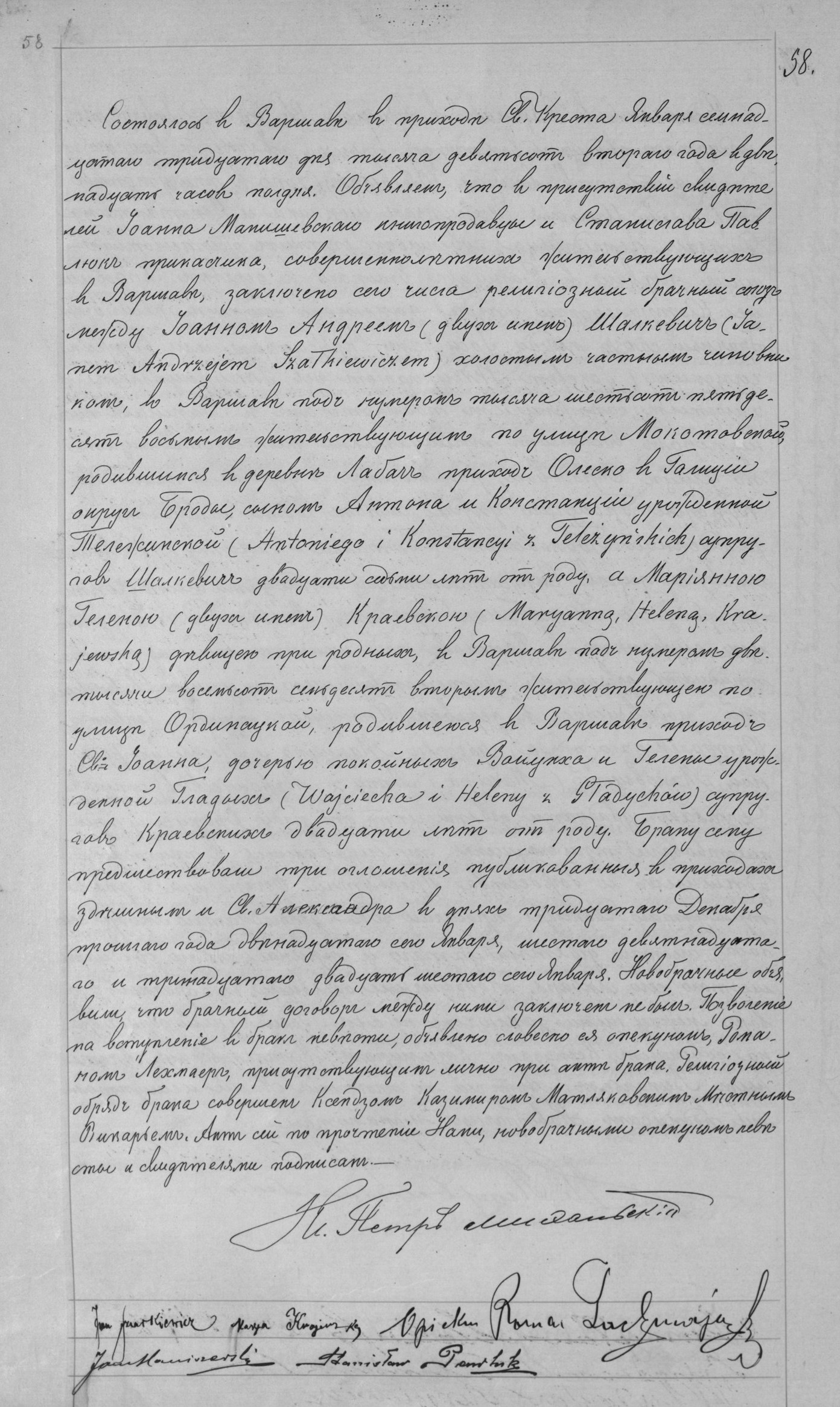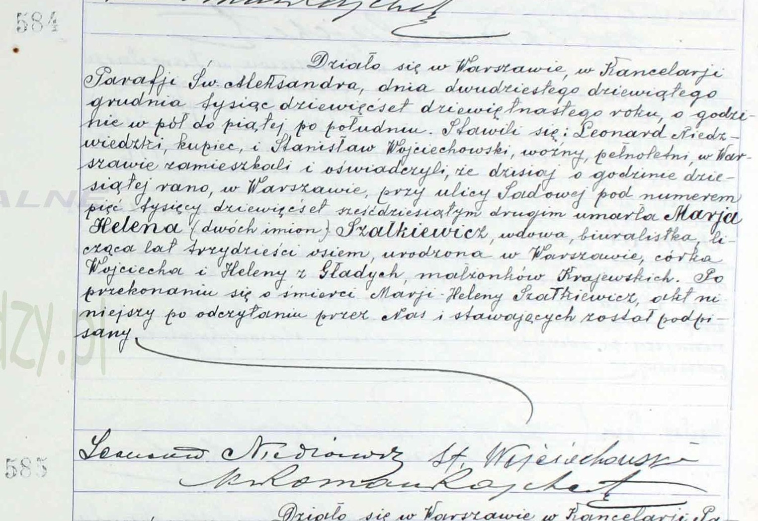 - ślub: Akt małżeństwa: Warszawa św. Krzyż (obecn. m. Warszawa), rok 1902, nr aktu 58 [indeks na http://geneteka.genealodzy.pl/] http://metryki.genealodzy.pl/metryki.php?op=kt&ar=1&zs=0158d&sy=1902&kt=2 [podgląd] - zgon: Akt zgonu: Warszawa św. Aleksander (obecn. m. Warszawa), 584/1919 http://localhost/mjm/aleksander_1919_580-585.jpg [podglad]