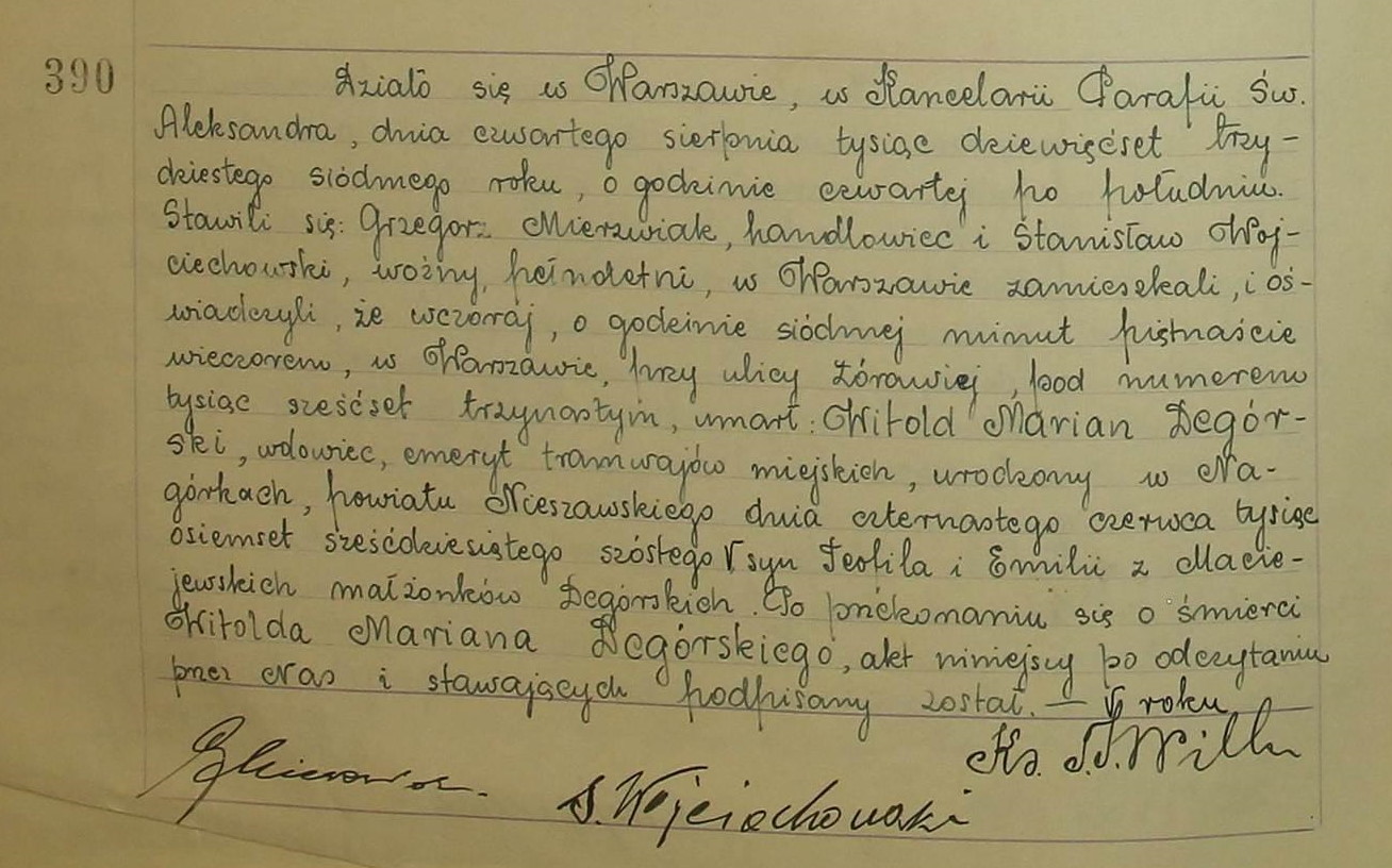 - urodzenie, zgon: Akt zgonu: Warszawa św. Aleksander (obecn. m. Warszawa), 390/1937 http://localhost/mjm/aleksander_1937_388-393.jpg [podglad]
