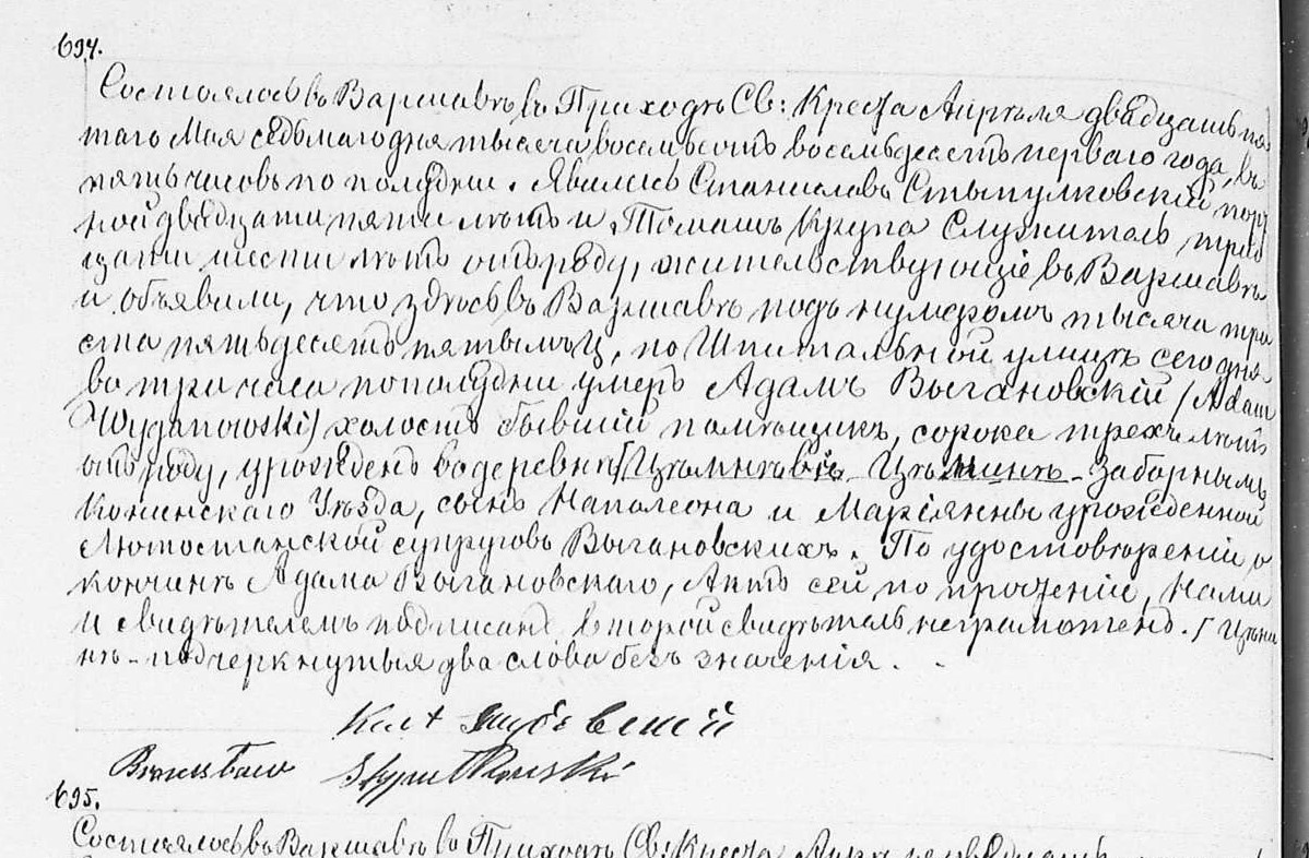 - zgon: Akt zgonu: Warszawa św. Krzyż (obecn. m. Warszawa), 694/1881 http://localhost/mjm/krzyz_1881_161_101_0537.jpg [podglad]