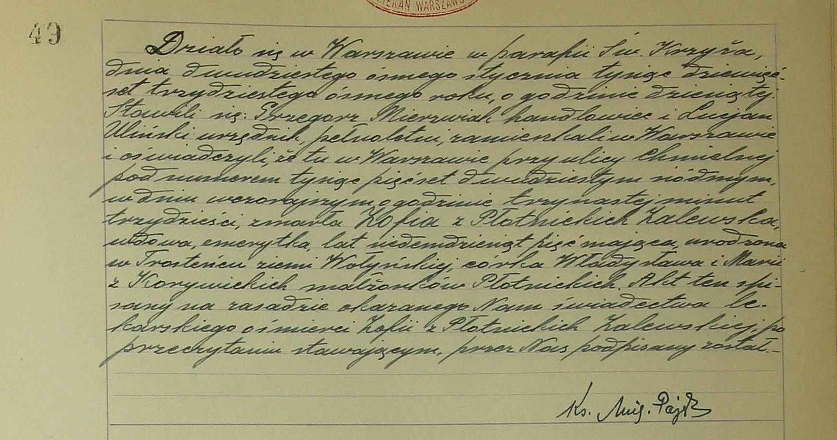 - zgon: Akt zgonu: Warszawa św. Krzyż (obecn. m. Warszawa), 49/1938 http://metryki.genealodzy.pl/metryki.php?op=kt&ar=1&zs=0158d&sy=1938a&kt=2 [podglad] - pogrzeb: Urz. M. st.W-wy http://cmentarze.um.warszawa.pl/pomnik.aspx?pom_id=46207