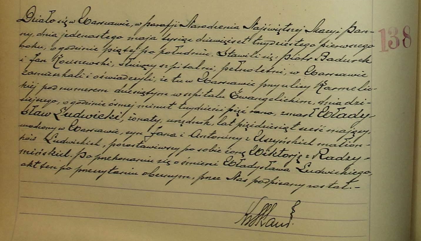 - ślub: gzg.11284053 - zgon: Akt zgonu: Warszawa-Leszno Narodzenie NMP (obecn. m. Warszawa), 138/1931 http://metryki.genealodzy.pl/metryki.php?op=kt&ar=1&zs=1217d&sy=1931a&kt=2 [podglad]