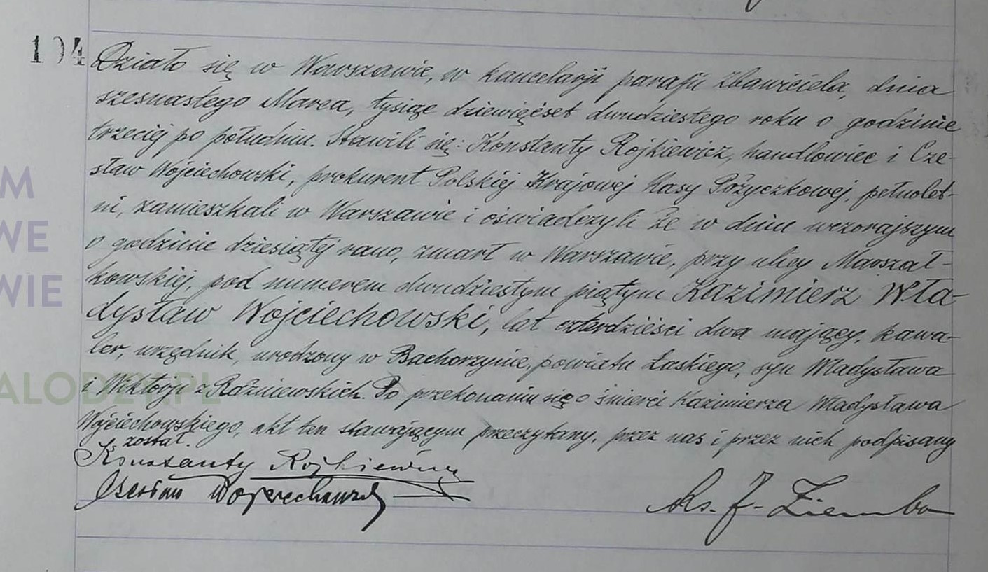 - zgon: Akt zgonu: Warszawa Najświętszego Zbawiciela (obecn. m. Warszawa), 104/1920 http://localhost/mjm/zbawiciel_1920_100-105.jpg [podglad]
