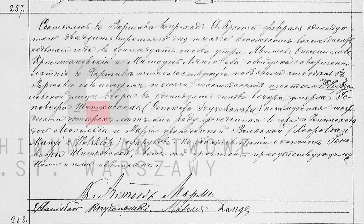 - ślub: Akt małżeństwa: Częstochowa św. Zygmunta (obecn. woj. śl.), rok 1820, nr aktu [bez nru] [indeks na http://geneteka.genealodzy.pl/] https://familysearch.org/pal:/MM9.3.1/TH-267-11673-115990-78?cc=2115410&wc=9RTW-YWG:362228601,362234901,362438301 |