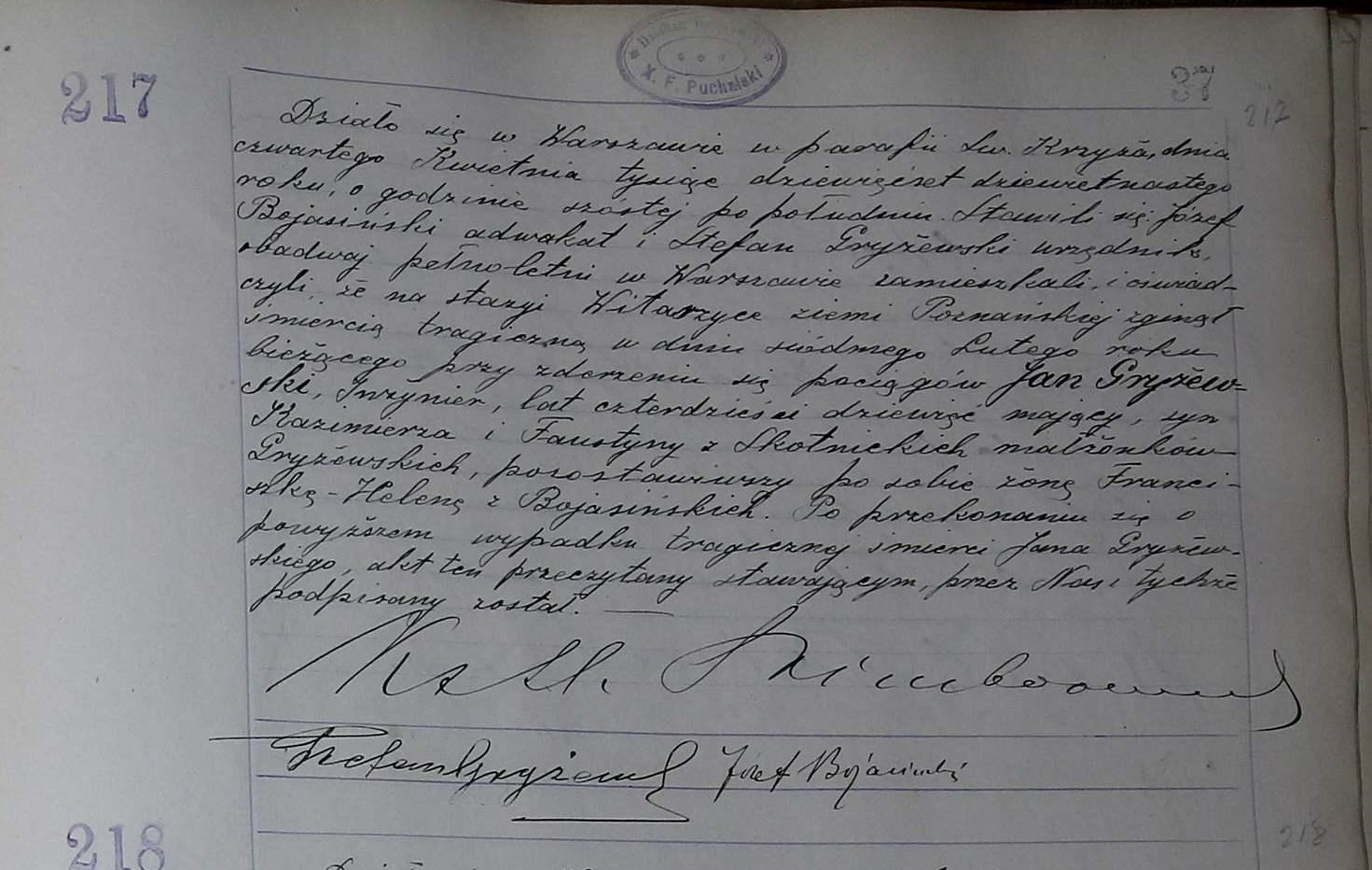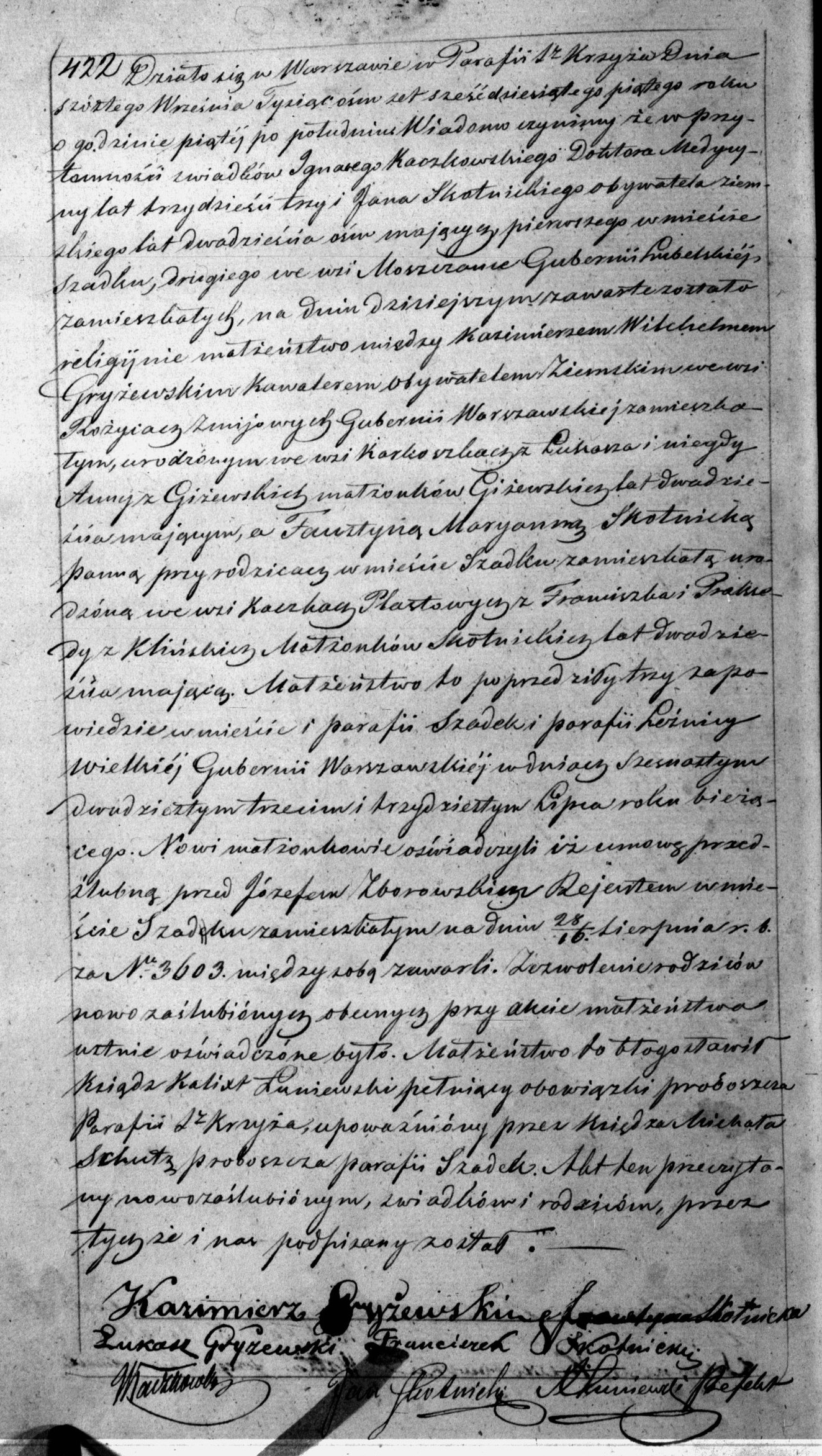 - ślub: Akt małżeństwa: Warszawa św. Krzyż (obecn. m. Warszawa), rok 1865, nr aktu 422 [indeks na http://geneteka.genealodzy.pl/] http://metryki.genealodzy.pl/metryki.php?op=kt&ar=1&zs=0158d&sy=1865b&kt=2 [podgląd]