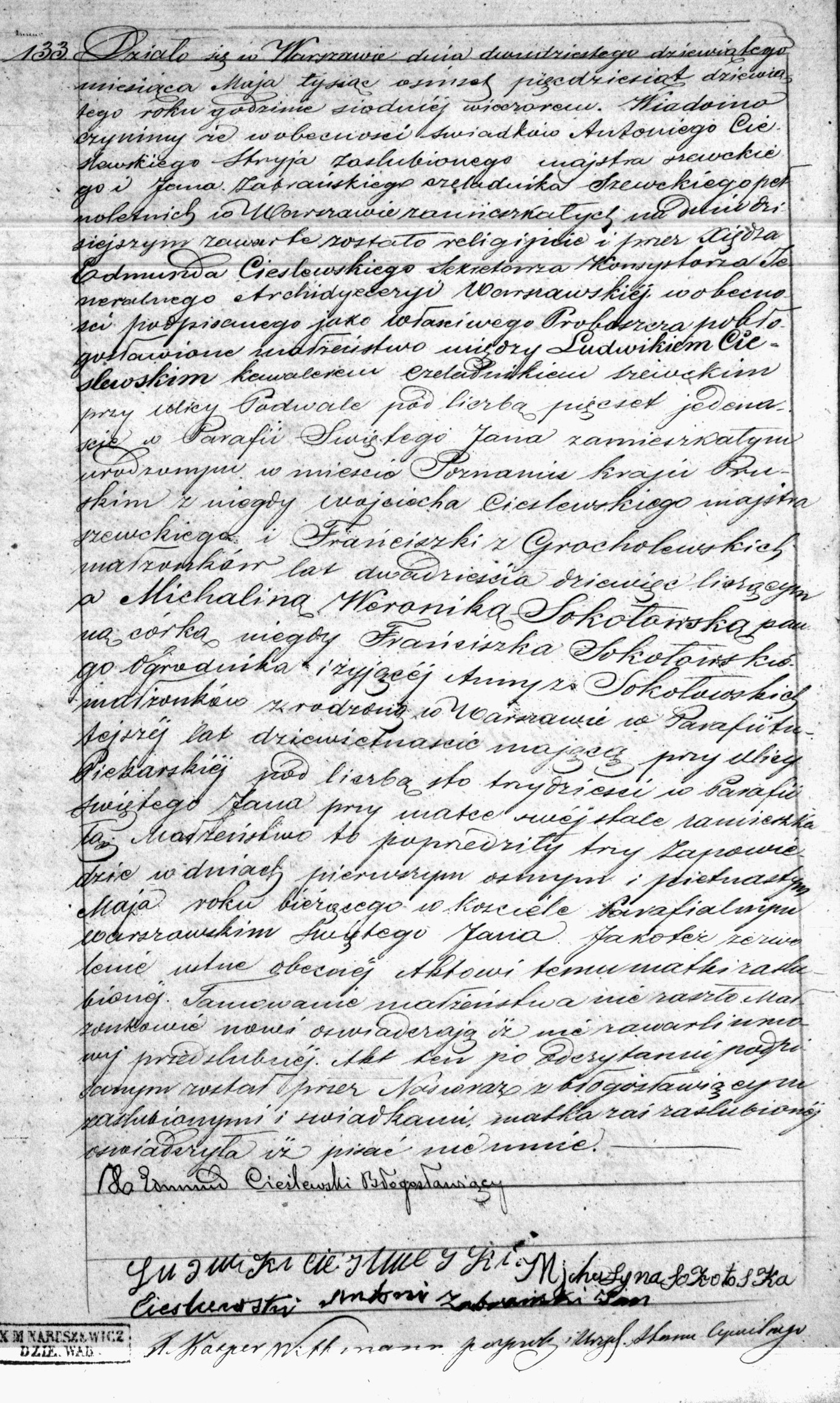 - ¶lub: Akt ma³¿eñstwa: Warszawa ¶w. Jan (obecn. m. Warszawa), rok 1859, nr aktu 133 [indeks na http://geneteka.genealodzy.pl/] http://metryki.genealodzy.pl/metryki.php?op=kt&ar=1&zs=0161d&sy=1859&kt=2 [podgl±d]