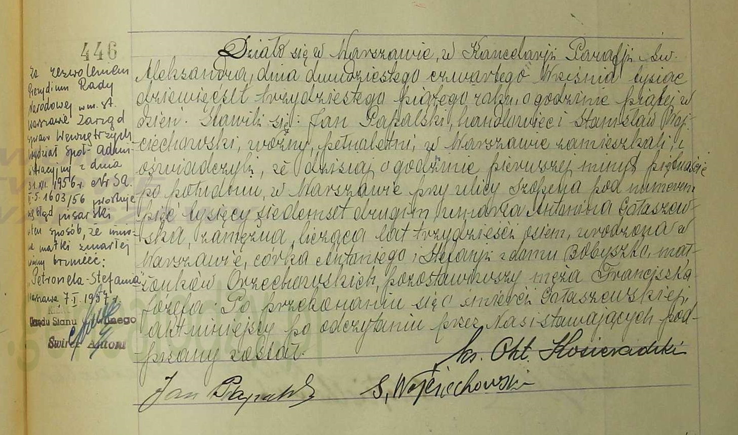 - ślub: Akt małżeństwa: Warszawa św. Jan (obecn. m. Warszawa), rok 1891, nr aktu 84 [indeks na http://geneteka.genealodzy.pl/] http://metryki.genealodzy.pl/metryka.php?ar=1&zs=0161d&sy=1891b&kt=2&skan=084-085.jpg [podgląd]