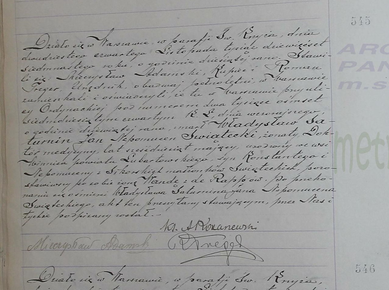 | Władysław Saturnin Jan Nepomucen Świątecki, dr med. Uniwersytetu Jagiellońskiego, ca 1858-1917 |
