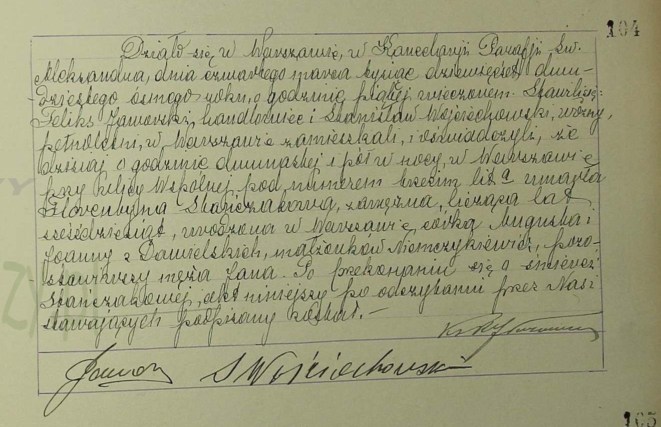 - ślub: Akt małżeństwa: Warszawa Przemienienie Pańskie (obecn. m. Warszawa), rok 1904, nr aktu 33 [indeks na http://geneteka.genealodzy.pl/] http://metryki.genealodzy.pl/metryki.php?op=kt&ar=1&zs=1216d&sy=1904&kt=2 [podgląd] - zgon: Akt zgonu: Warszawa św. Aleksander (obecn. m. Warszawa), 104/1928 http://localhost/mjm/aleksander_1928_100-105.jpg [podglad]