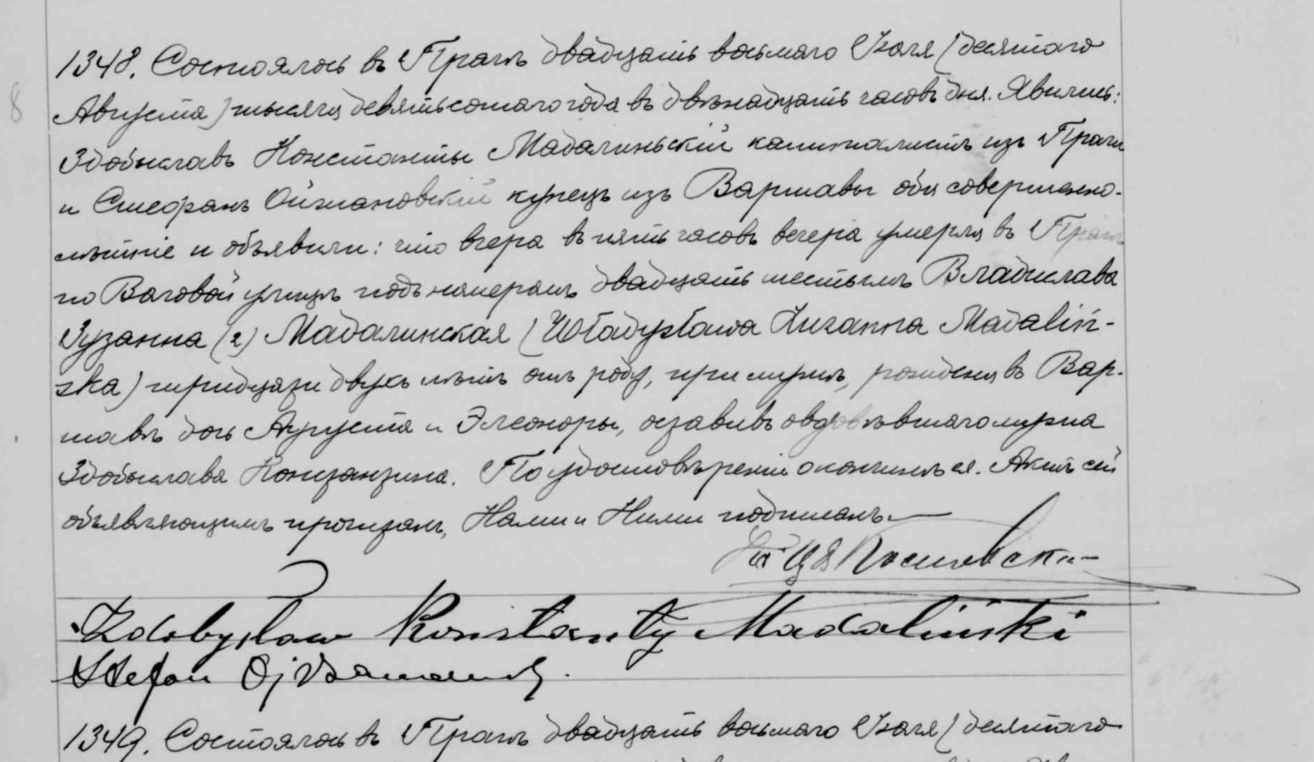 - ślub: Akt małżeństwa: Warszawa-Praga MB Loretańska (obecn. m. Warszawa), rok 1895, nr aktu 326 [indeks na http://geneteka.genealodzy.pl/] http://metryki.genealodzy.pl/metryki.php?op=kt&ar=1&zs=0163d&sy=1895b&kt=2 [podgląd] - zgon: Akt zgonu: Warszawa-Praga MB Loretańska (obecn. m. Warszawa), 1348/1900 http://metryki.genealodzy.pl/metryki.php?op=kt&ar=1&zs=0163d&sy=1900d&kt=4 [podglad]