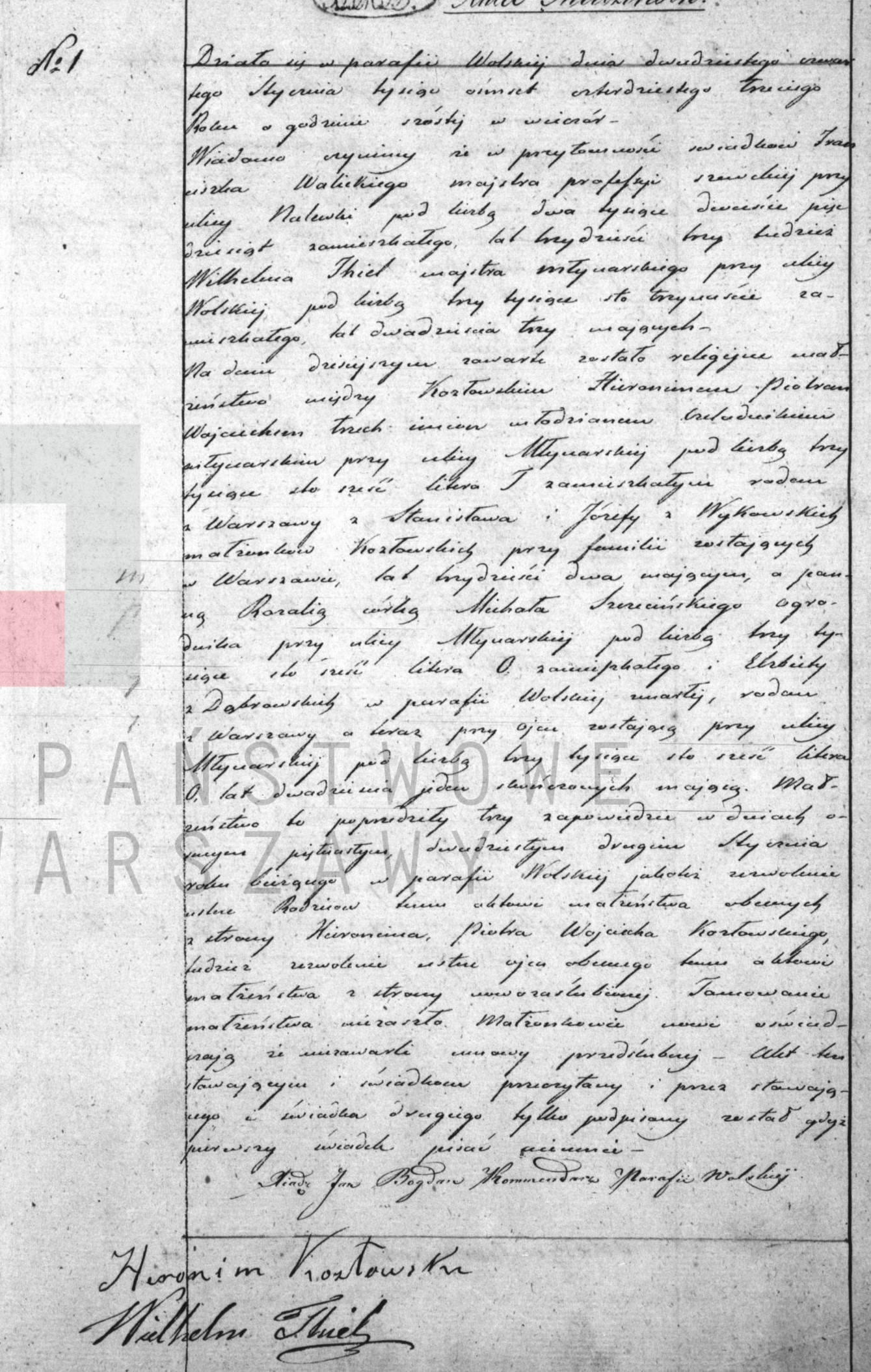- ślub: Akt małżeństwa: Warszawa-Wola św. Stanisław (obecn. m. Warszawa), rok 1843, nr aktu 1 [indeks na http://geneteka.genealodzy.pl/] http://metryki.genealodzy.pl/metryki.php?op=kt&ar=1&zs=0179d&sy=1843&kt=2 [podgląd]