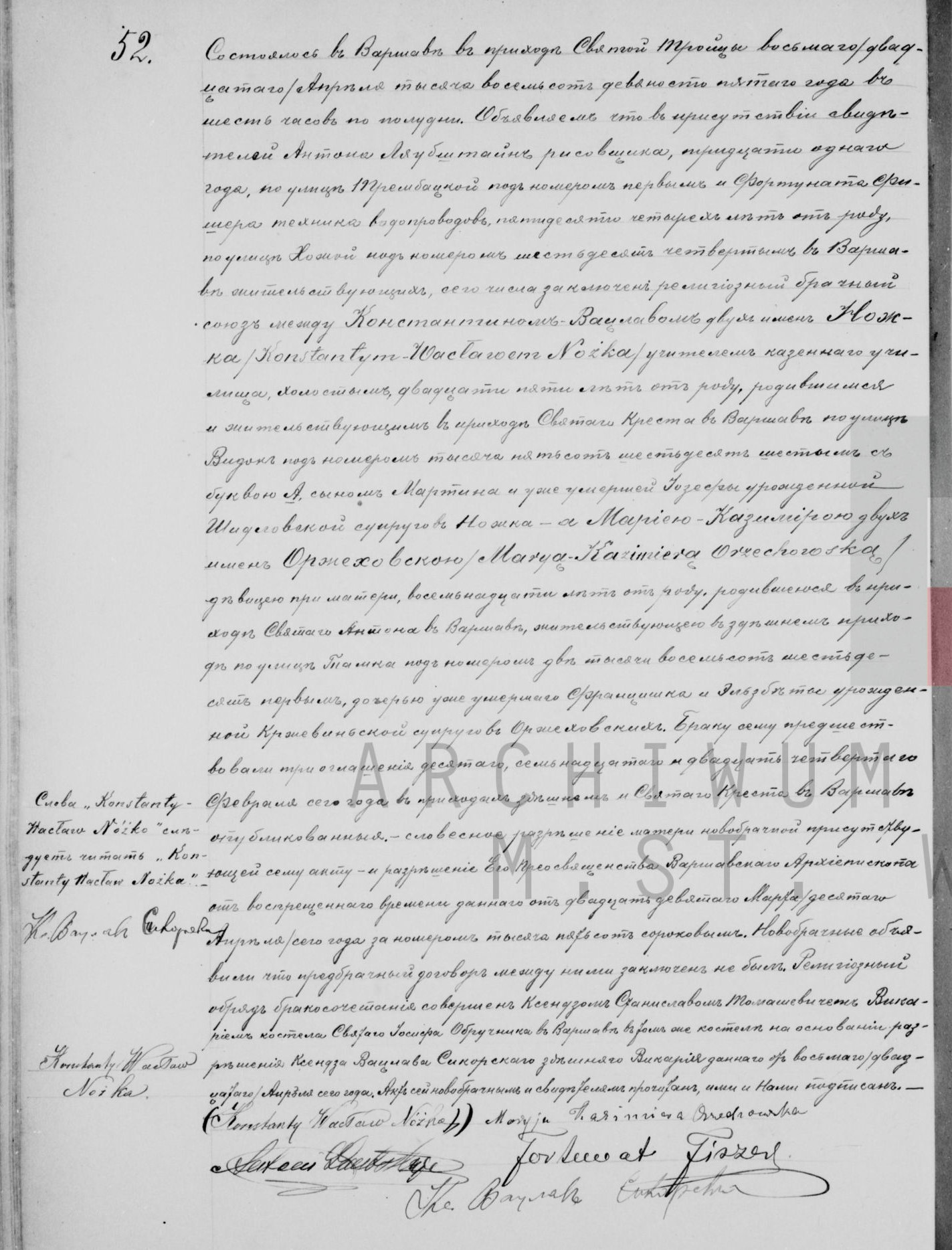 - ślub: Akt małżeństwa: Warszawa św. Trójca (obecn. m. Warszawa), rok 1895, nr aktu 52 [indeks na http://geneteka.genealodzy.pl/] http://metryki.genealodzy.pl/metryki.php?op=kt&ar=1&zs=1215d&sy=1895b&kt=2 [podgląd]