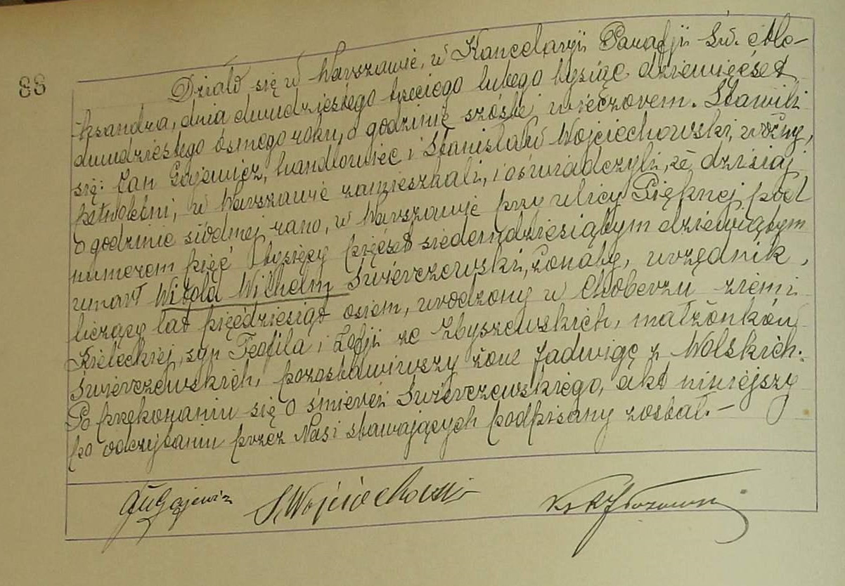 - urodzenie: wyliczony rok ur.: akt zgonu - ślub: Akt małżeństwa: Kazimierza Wielka (obecn. woj. świętok.), rok 1896, nr aktu 22 [indeks na http://geneteka.genealodzy.pl/] [zobacz] http://metryki.genbaza.pl/genbaza,list,31495,1 - zgon: Akt zgonu: Warszawa św. Aleksander (obecn. m. Warszawa), 88/1928 http://localhost/mjm/aleksander_1928_088-093.jpg [podglad] - pogrzeb: Urz. M. st.W-wy http://cmentarze.um.warszawa.pl/pomnik.aspx?pom_id=20451