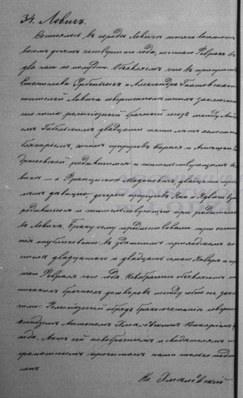 - ślub: Akt małżeństwa: Łowicz Kolegiata (obecn. woj. łódz.), rok 1884, nr aktu 34 [indeks na http://geneteka.genealodzy.pl/] http://metryki.genealodzy.pl/metryki.php?op=kt&ar=3&zs=1571d&sy=1884&kt=2 [podgląd]
