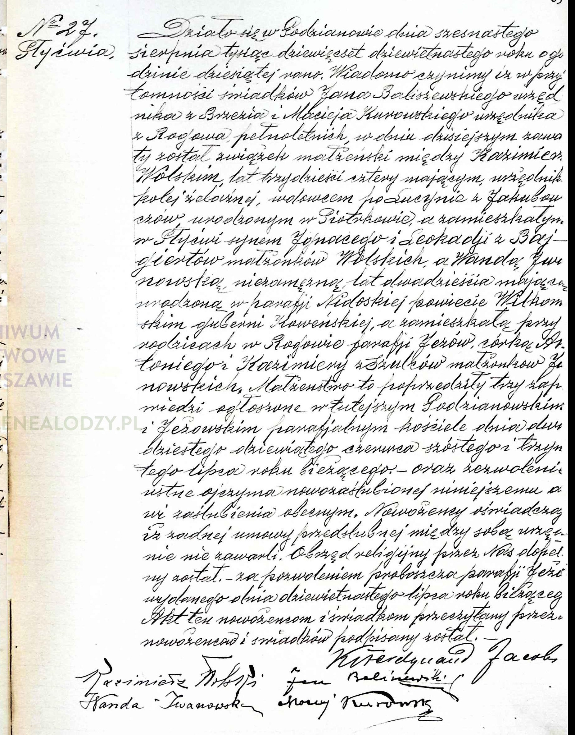 - ślub: Akt małżeństwa: Godzianów (obecn. woj. łódz.), rok 1919, nr aktu 27 [indeks na http://geneteka.genealodzy.pl/] https://metryki.genealodzy.pl/id1121-sy1919-kt2 [podgląd]