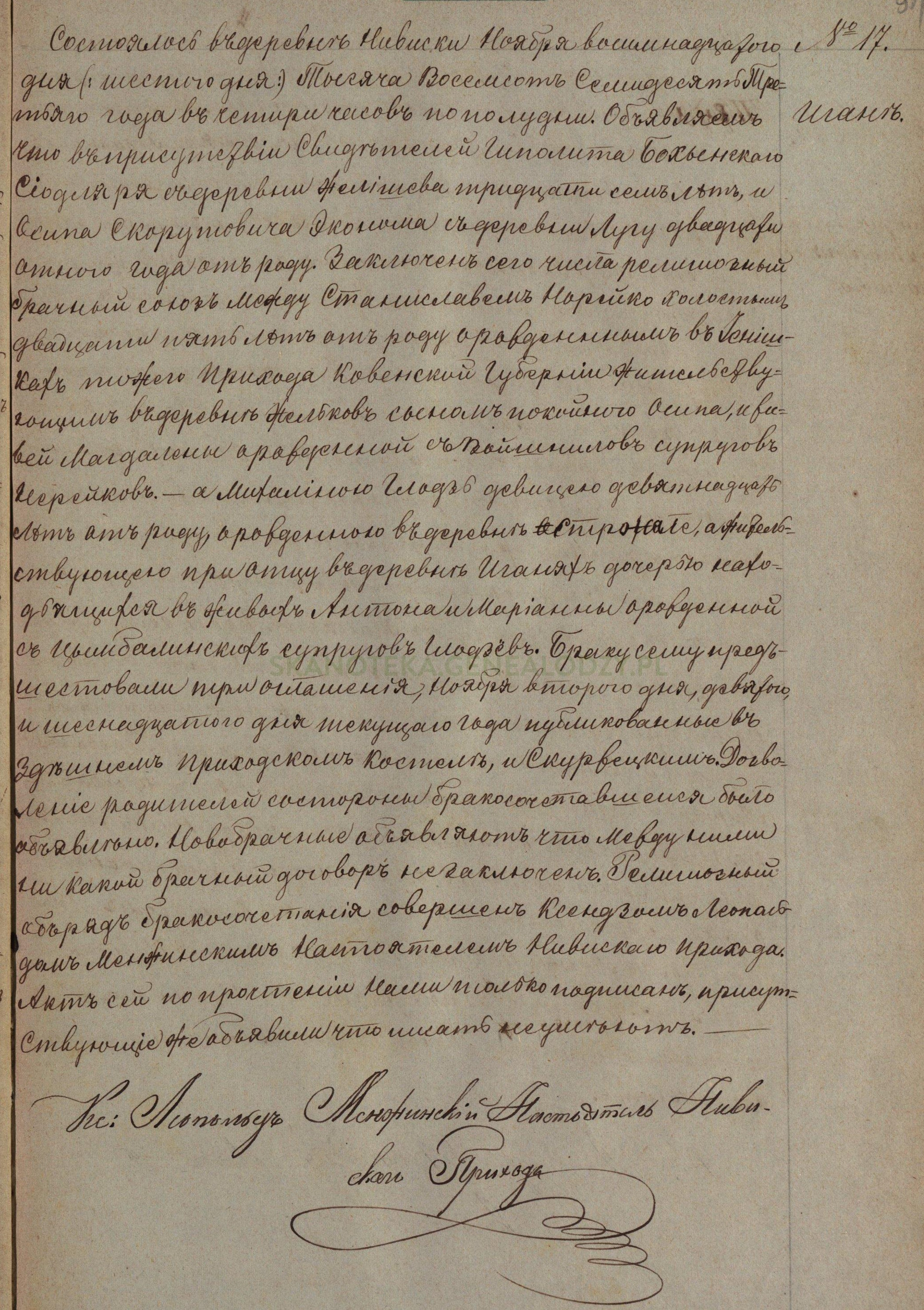 - ślub: Akt małżeństwa: Niwiski (obecn. woj. mazow.), rok 1873, nr aktu 17 [indeks na http://geneteka.genealodzy.pl/] https://metryki.genealodzy.pl/id2136-sy1873-kt2 [podgląd]