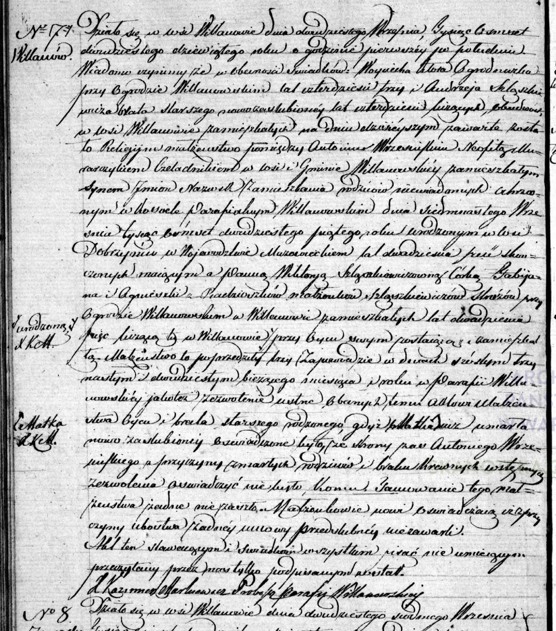 - ślub: Akt małżeństwa: Warszawa-Wilanów św. Anna (obecn. m. Warszawa), rok 1829, nr aktu 7 [indeks na http://geneteka.genealodzy.pl/] http://metryki.genealodzy.pl/metryki.php?op=kt&ar=1&zs=0177d&sy=1829&kt=2 [podgląd]