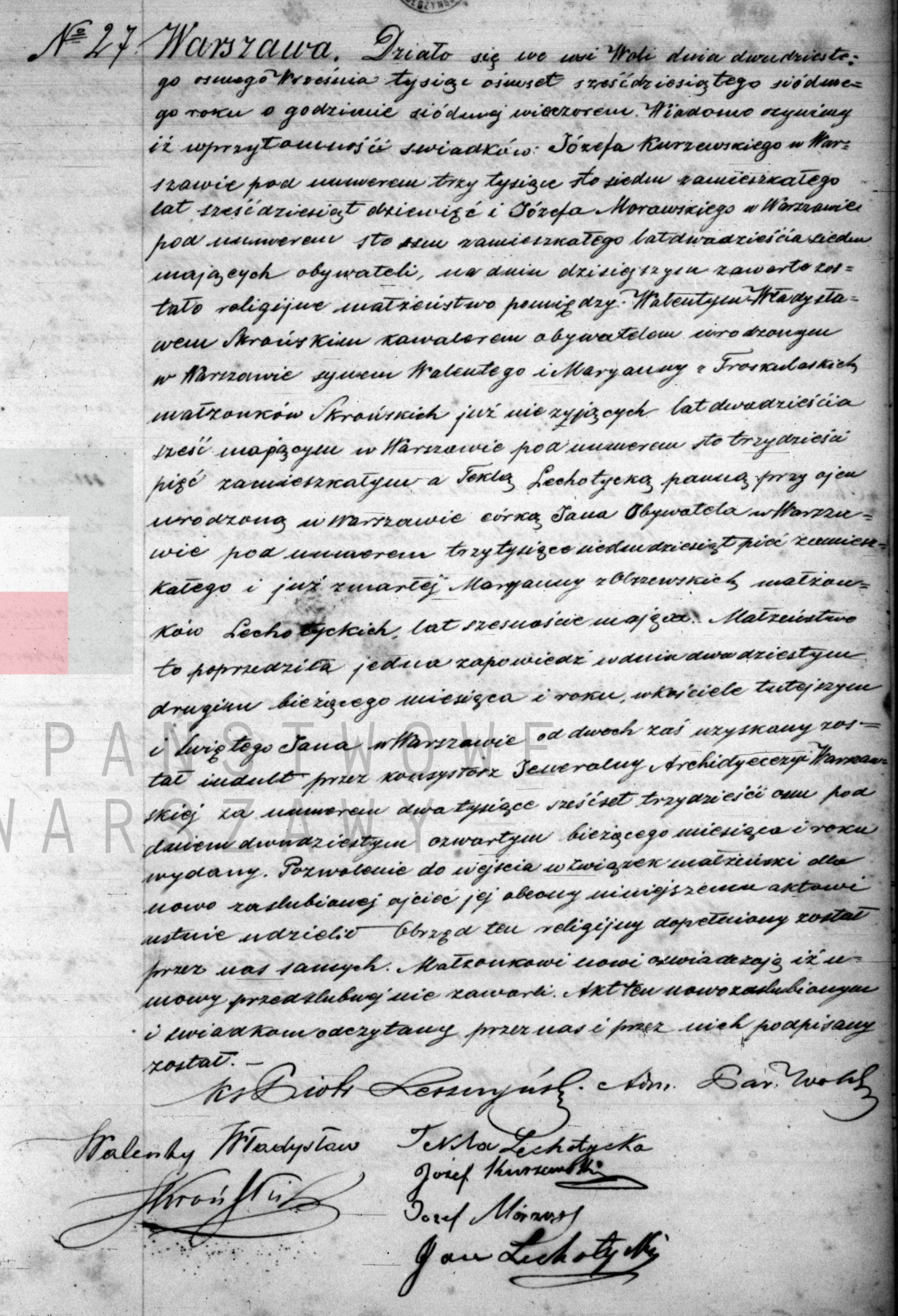 - ślub: Akt małżeństwa: Warszawa-Wola św. Stanisław (obecn. m. Warszawa), rok 1867, nr aktu 27 [indeks na http://geneteka.genealodzy.pl/] http://metryki.genealodzy.pl/metryki.php?op=kt&ar=1&zs=0179d&sy=1867&kt=2 [podgląd] - zgon: Epitafium na cm. Powązkowskim - pogrzeb: Urz. M. st.W-wy http://cmentarze.um.warszawa.pl/pomnik.aspx?pom_id=2163