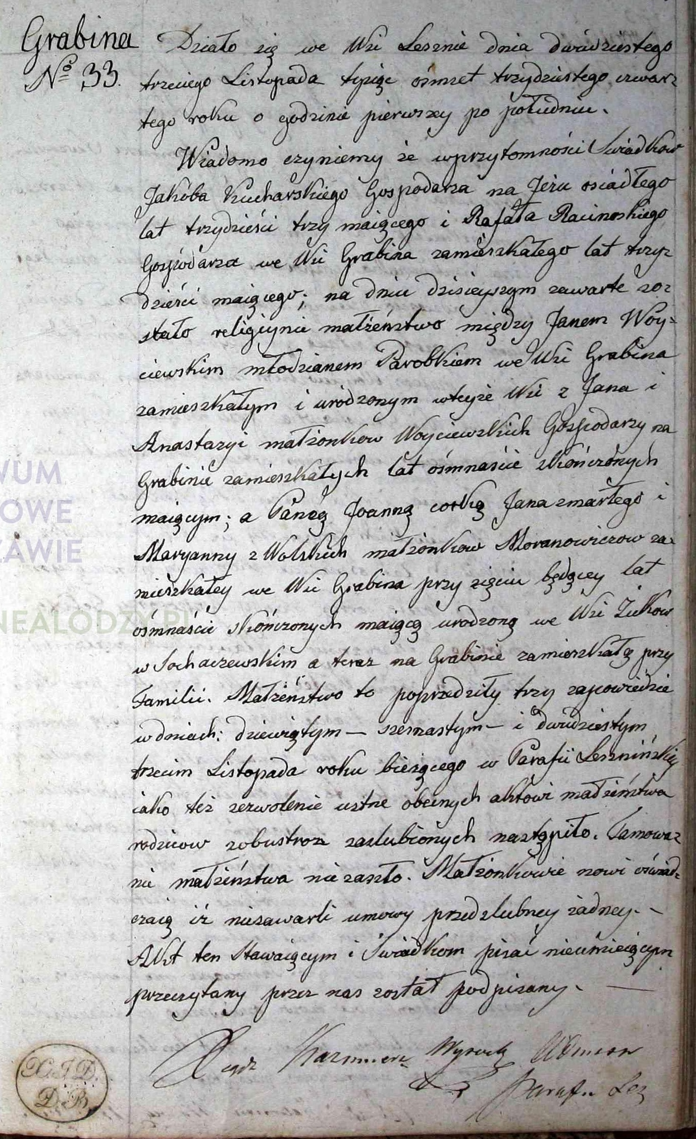 - ślub: Akt małżeństwa: Szymanów (obecn. woj. mazow.), rok 1808, nr aktu [bez nru] [indeks na http://geneteka.genealodzy.pl/]