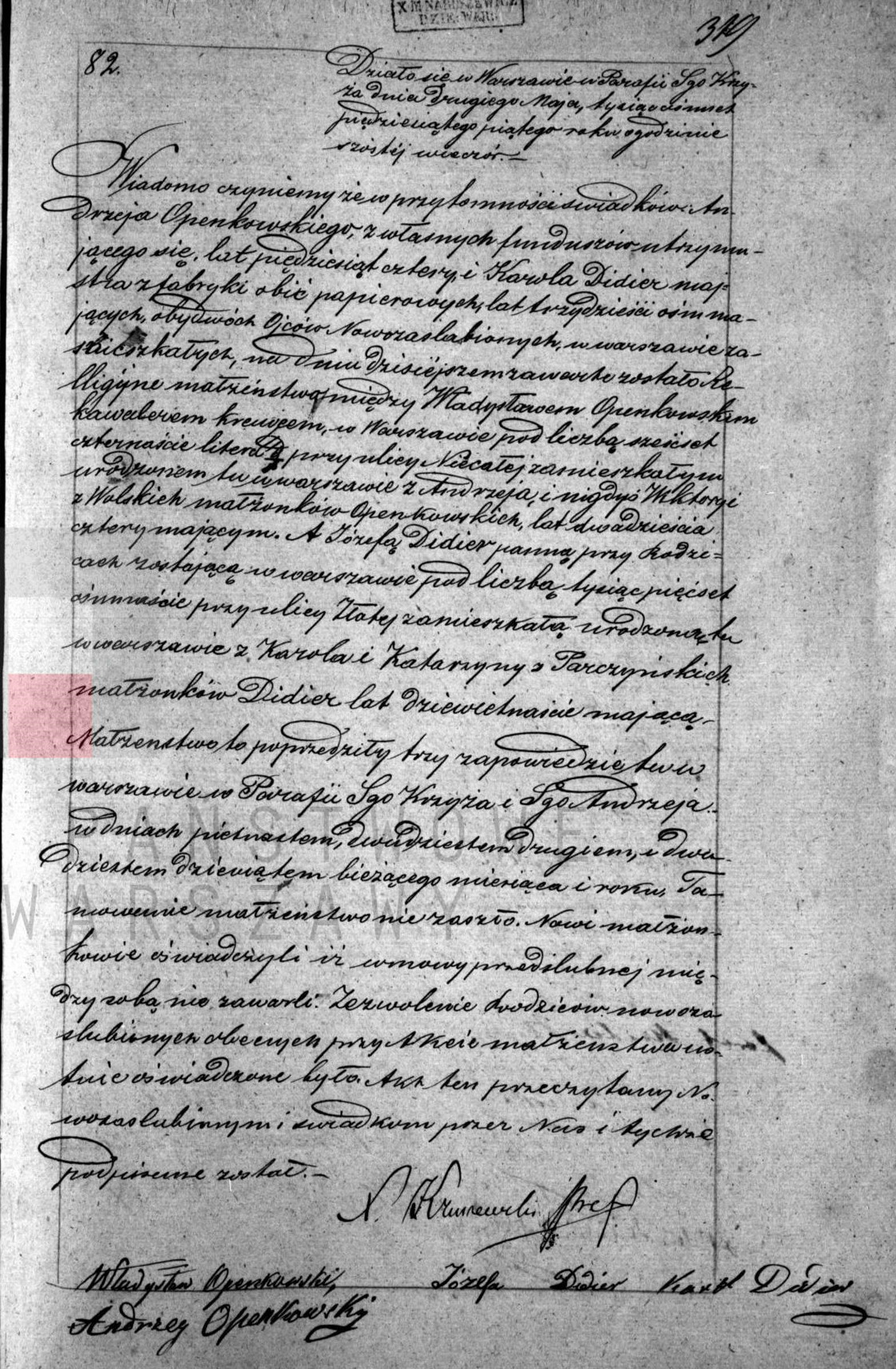 - ślub: Akt małżeństwa: Warszawa św. Krzyż (obecn. m. Warszawa), rok 1829, nr aktu 264 [indeks na http://geneteka.genealodzy.pl/] http://metryki.genealodzy.pl/metryki.php?op=kt&ar=1&zs=0158d&sy=1829&kt=2 [podgląd]