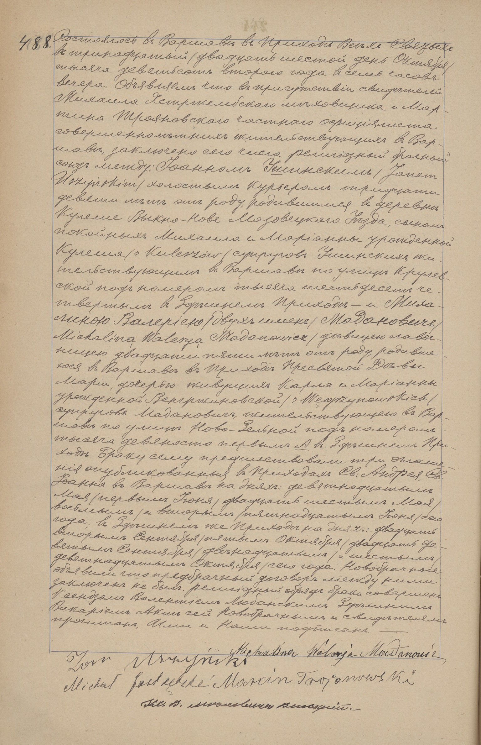 - ślub: Akt małżeństwa: Warszawa Wszystkich Świętych (obecn. m. Warszawa), rok 1902, nr aktu 488 [indeks na http://geneteka.genealodzy.pl/] http://metryki.genealodzy.pl/metryka.php?ar=8&zs=9264d&sy=326&kt=1&skan=488.jpg [podgląd]