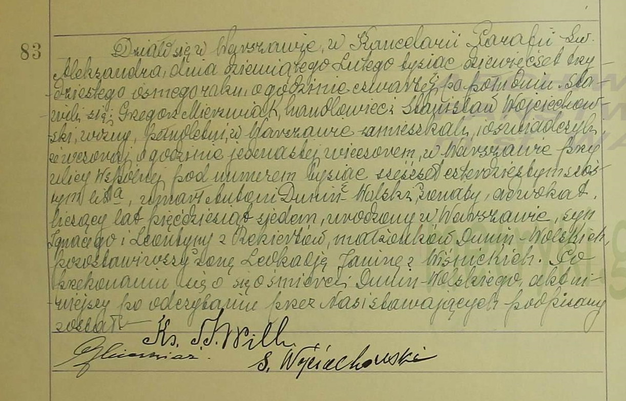 - ślub: Akt małżeństwa: Warszawa św. Andrzej (obecn. m. Warszawa), rok 1912, nr aktu 244 [indeks na http://geneteka.genealodzy.pl/] http://metryki.genealodzy.pl/metryki.php?op=kt&ar=8&zs=9159d&sy=260&kt=2 [podgląd] - zgon: Akt zgonu: Warszawa św. Aleksander (obecn. m. Warszawa), 83/1938 http://localhost/mjm/aleksander_1938_082-087.jpg [podglad] - pogrzeb: Urz. M. st.W-wy http://cmentarze.um.warszawa.pl/pomnik.aspx?pom_id=10864