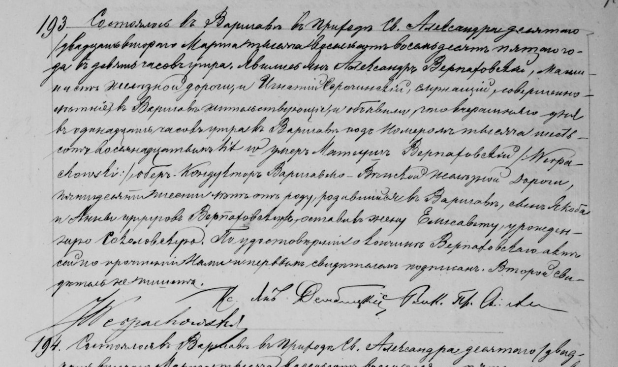 - ślub: Akt małżeństwa: Warszawa św. Krzyż (obecn. m. Warszawa), rok 1851, nr aktu 57 [indeks na http://geneteka.genealodzy.pl/] http://metryki.genealodzy.pl/metryki.php?op=kt&ar=1&zs=0158d&sy=1851&kt=2 [podgląd] - zgon: Akt zgonu: Warszawa św. Aleksander (obecn. m. Warszawa), 193/1885 http://szukajwarchiwach.pl/72/162/0/-/106/str/1/2/100#tabSkany [podglad]
