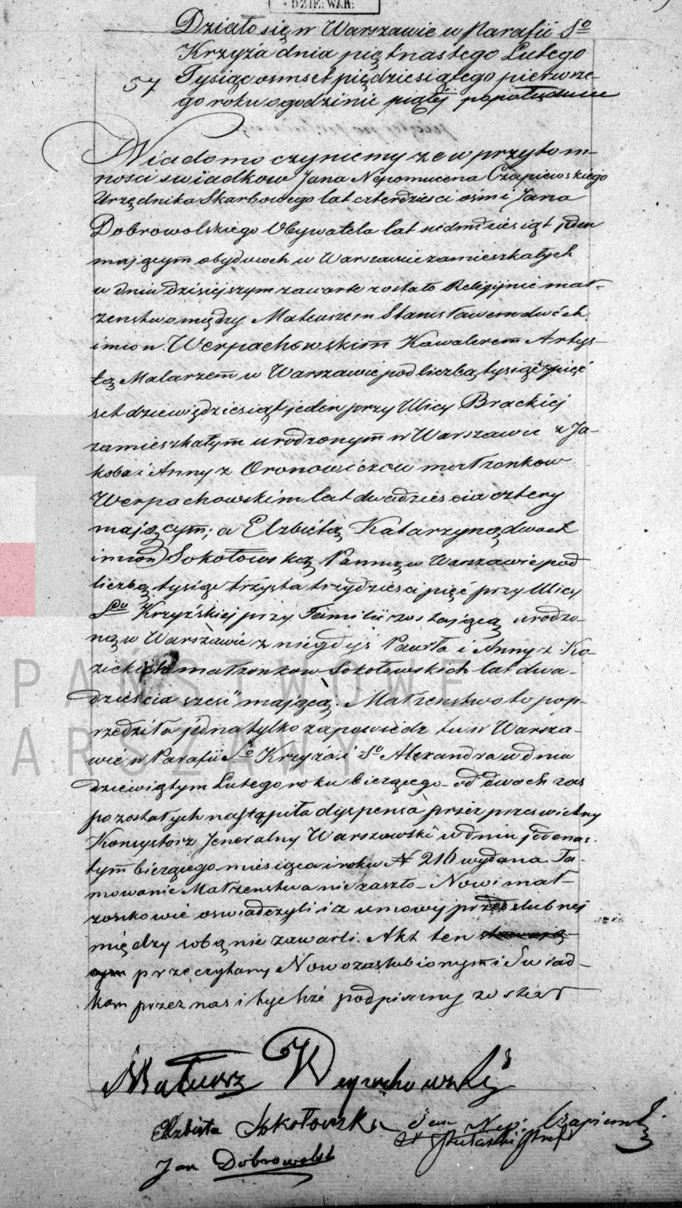 - ślub: Akt małżeństwa: Warszawa ASC Cyrkuł VII (obecn. m. Warszawa), rok 1816, nr aktu 135 [indeks na http://geneteka.genealodzy.pl/] http://metryki.genealodzy.pl/metryka.php?ar=1&zs=0189d&sy=121&kt=2&skan=135.jpg [podgląd]