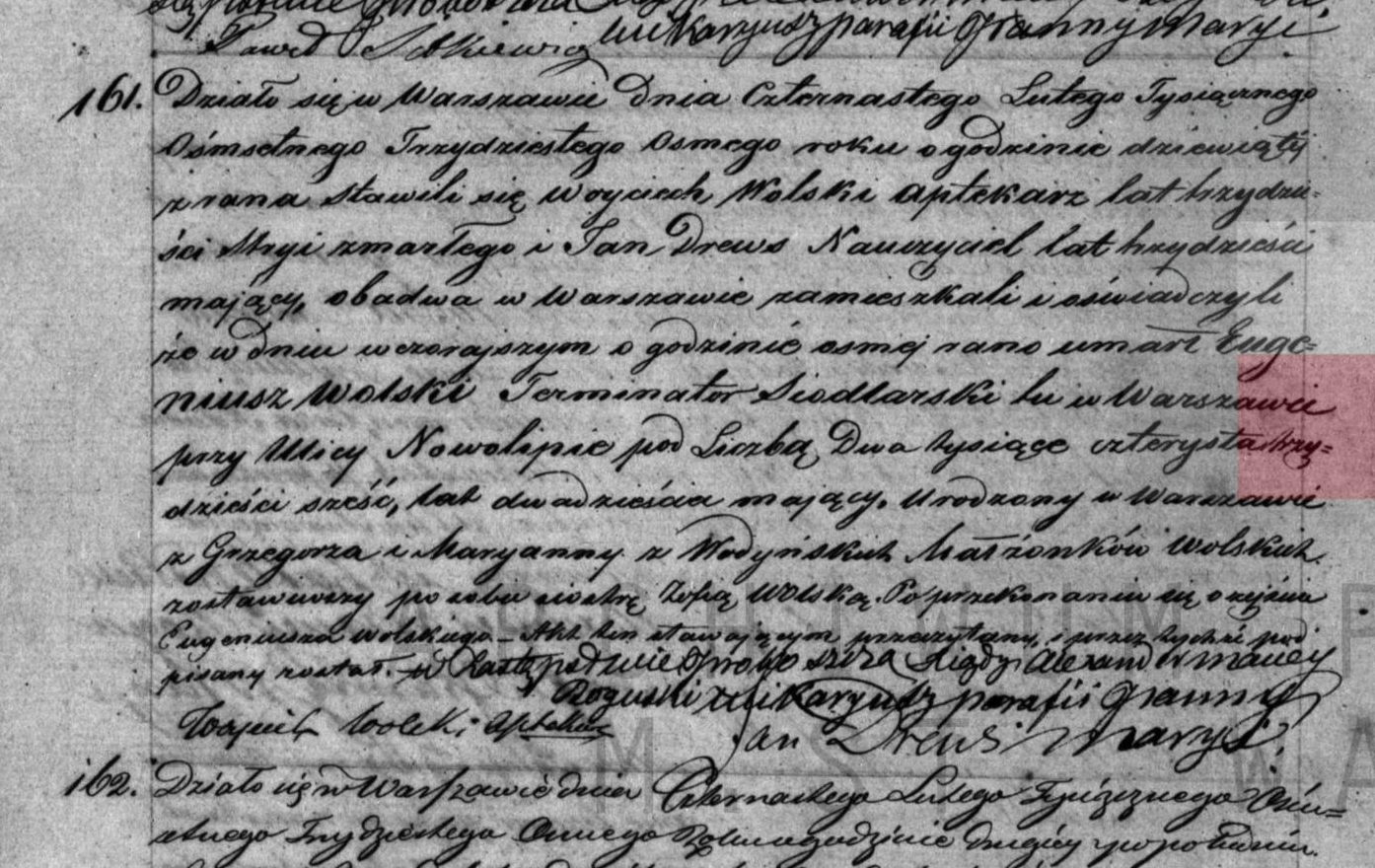 - ślub: Akt małżeństwa: Warszawa ASC Cyrkuł IV (obecn. m. Warszawa), rok 1812, nr aktu 59 [indeks na http://geneteka.genealodzy.pl/] https://szukajwarchiwach.gov.pl/jednostka/-/jednostka/12481292