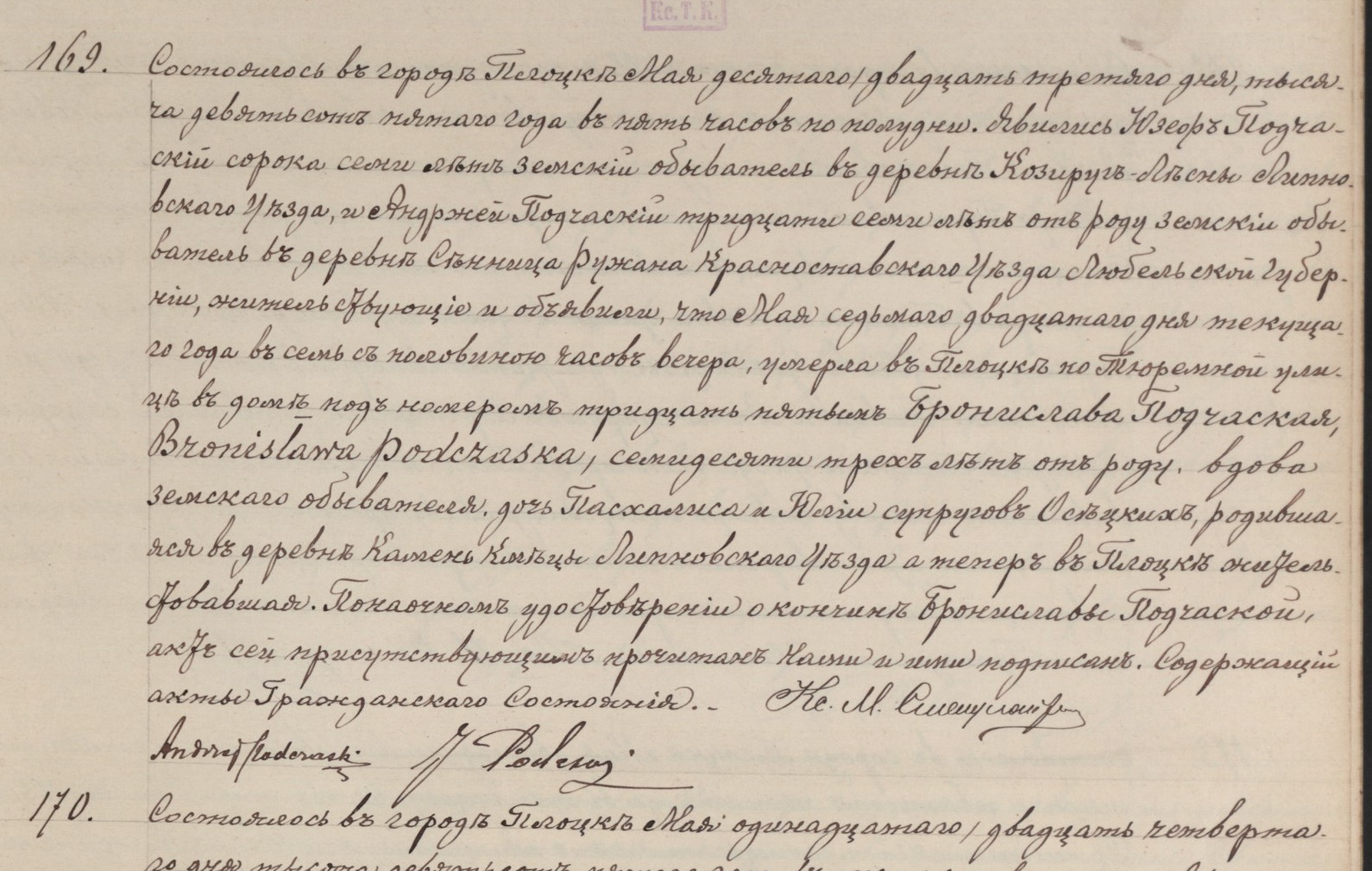- ślub: Akt małżeństwa: Tłuchowo (obecn. woj. kuj.-pom.), rok 1851, nr aktu 20 [indeks na http://geneteka.genealodzy.pl/] https://www.genealogiawarchiwach.pl/#query.type=ALL&query.city=T%25C5%2582uchowo&query.dateFrom=1851&query.dateTo=1851&query.suggestion=false&query.thumbnails=false&query.facet=true&query.asc=false&query.sortMode=DEFAULT&modal=293903169&personTree=false&goComments=false&searcher=big&query.query [podgląd] - zgon: Akt zgonu: Płock (obecn. woj. mazow.), 169/1905 http://szukajwarchiwach.pl/50/155/0/-/156#tabSkany [podglad]