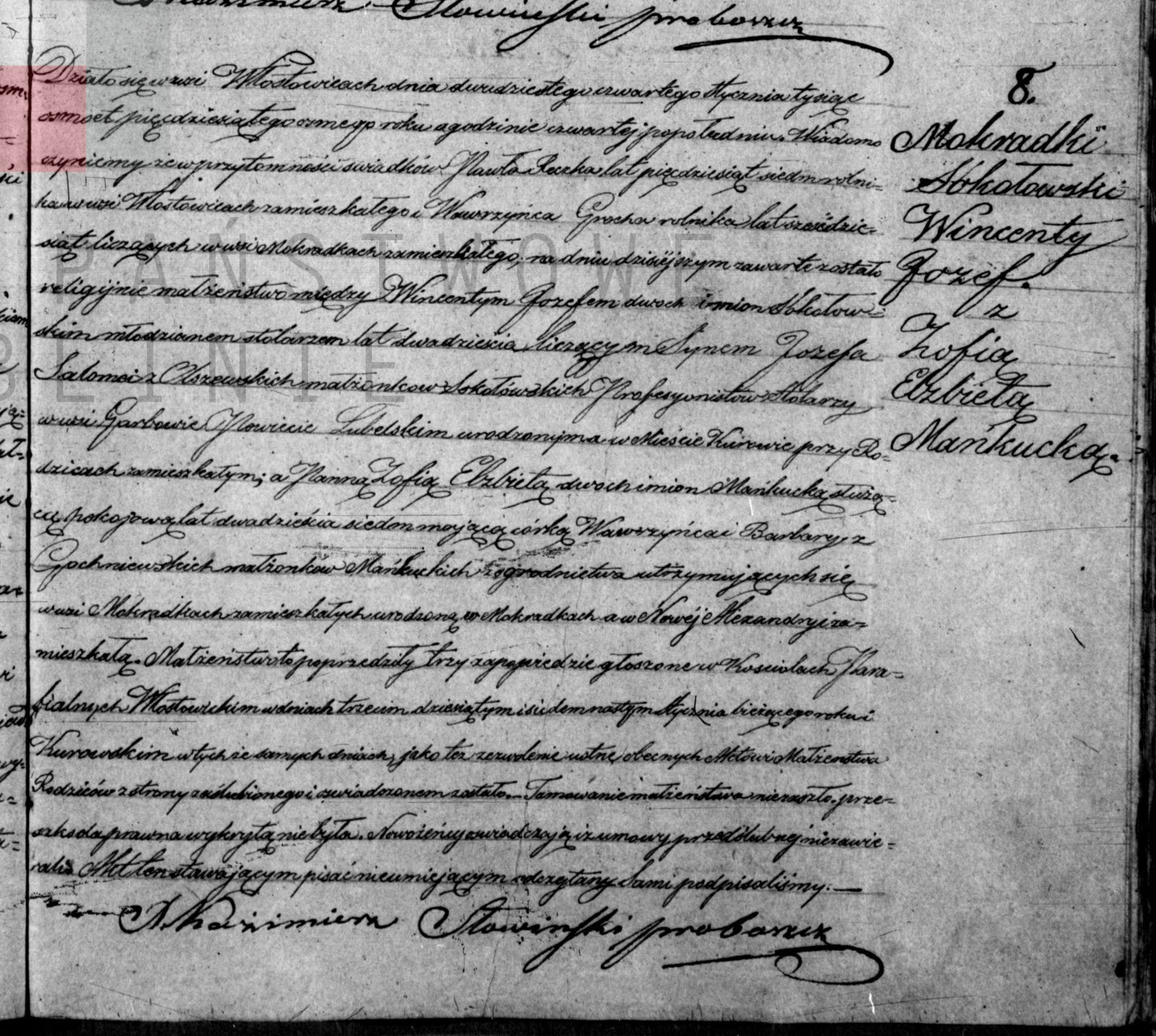 - ślub: Akt małżeństwa: Puławy-Włostowice (obecn. woj. lubel.), rok 1858, nr aktu 8 [indeks na http://geneteka.genealodzy.pl/] http://szukajwarchiwach.pl/35/1957/0/2.4/74#tabJednostka [podgląd]