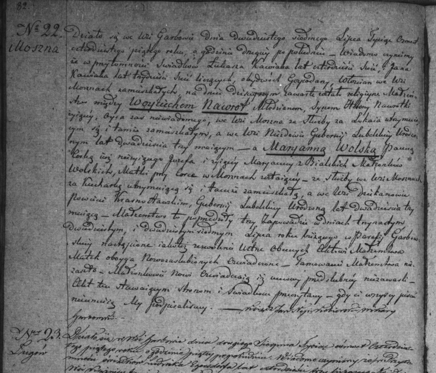 - ślub: Akt małżeństwa: Garbów (obecn. woj. lubel.), rok 1845, nr aktu 22 [indeks na http://lubgens.eu/] https://szukajwarchiwach.pl/35/1817/0/2.4/92/skan/full/qc8chM8c8dS4jYwxiSmjjw [podgląd]