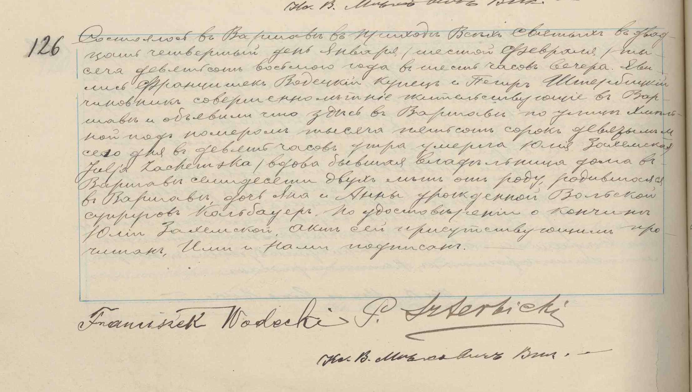 - ślub: Akt małżeństwa: Warszawa ASC Cyrkuł VII (obecn. m. Warszawa), rok 1820, nr aktu 62 [indeks na http://geneteka.genealodzy.pl/] http://metryki.genealodzy.pl/metryka.php?ar=1&zs=0189d&sy=125&kt=2&skan=062.jpg [podgląd] - zgon: Akt zgonu: Warszawa, par. św. Andrzeja (obecn. m. Warszawa), 45/1861 http://szukajwarchiwach.pl/72/159/0/-/31/skan/full/8BDpwf_9SXD5OUQBFiRYKQ [podglad] - pogrzeb: Urz. M. st.W-wy http://cmentarze.um.warszawa.pl/pomnik.aspx?pom_id=11379