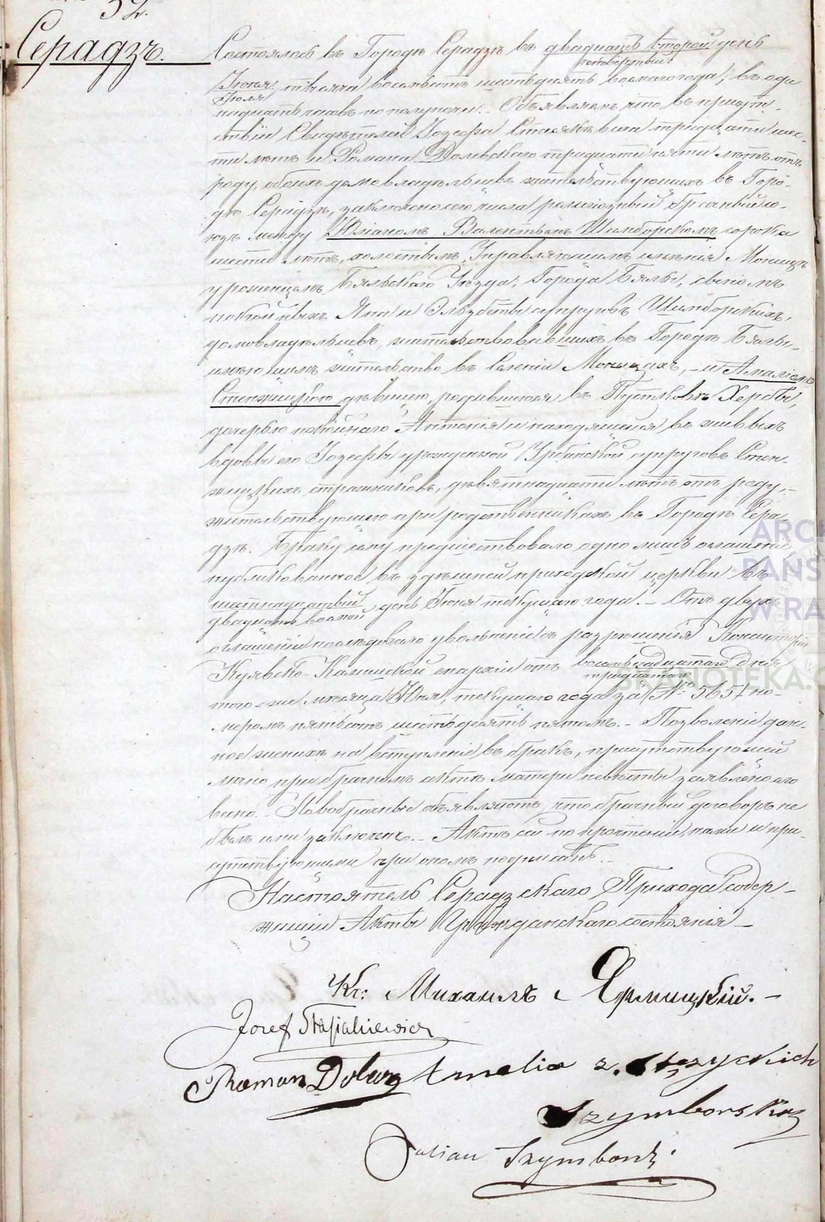 - ślub: Akt małżeństwa: Sieradz (obecn. woj. łódz.), rok 1839, nr aktu 30 [indeks na http://geneteka.genealodzy.pl/] http://metryki.genealodzy.pl/metryki.php?op=kt&ar=3&zs=1663d&sy=1839&kt=2 [podgląd]