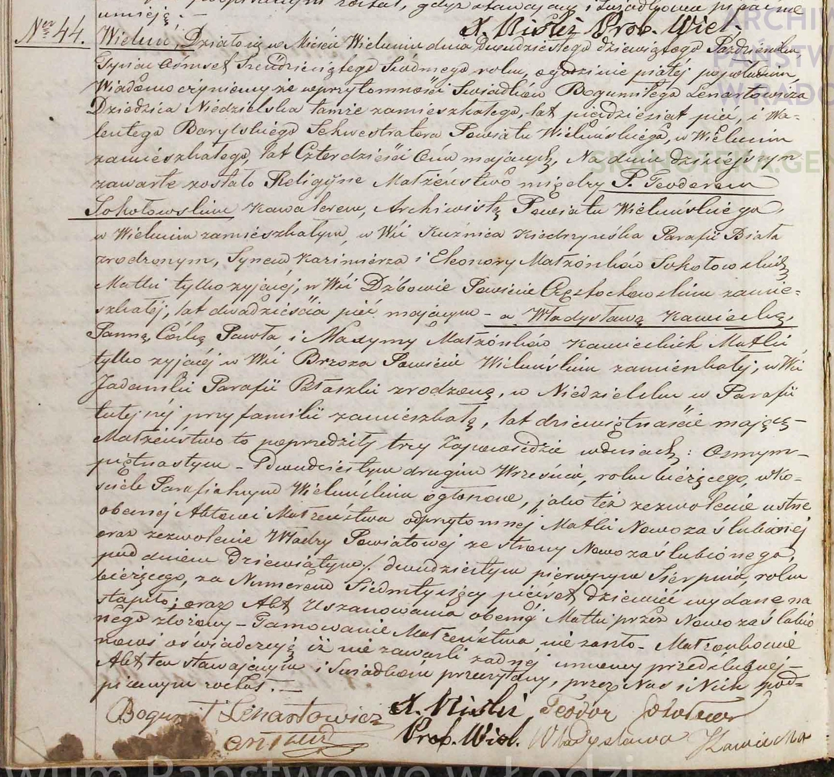 - ślub: Akt małżeństwa: Wieluń (obecn. woj. łódz.), rok 1867, nr aktu 44 [indeks na http://geneteka.genealodzy.pl/] http://metryki.genealodzy.pl/metryki.php?op=kt&ar=3&zs=1719d&sy=1867&kt=2 [podgląd]