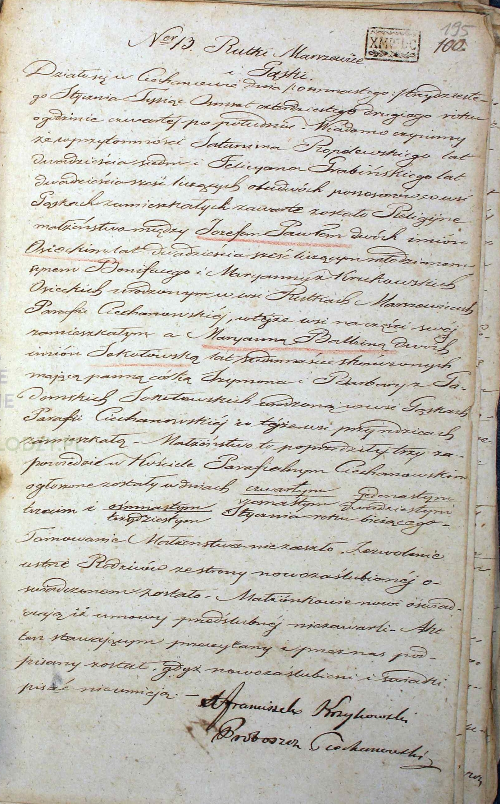 - ślub: Akt małżeństwa: Ciechanów (obecn. woj. mazow.), rok 1842, nr aktu 13 [indeks na http://geneteka.genealodzy.pl/] http://metryki.genealodzy.pl/metryki.php?op=kt&ar=13&zs=0136d&sy=1842&kt=2 [podgląd]